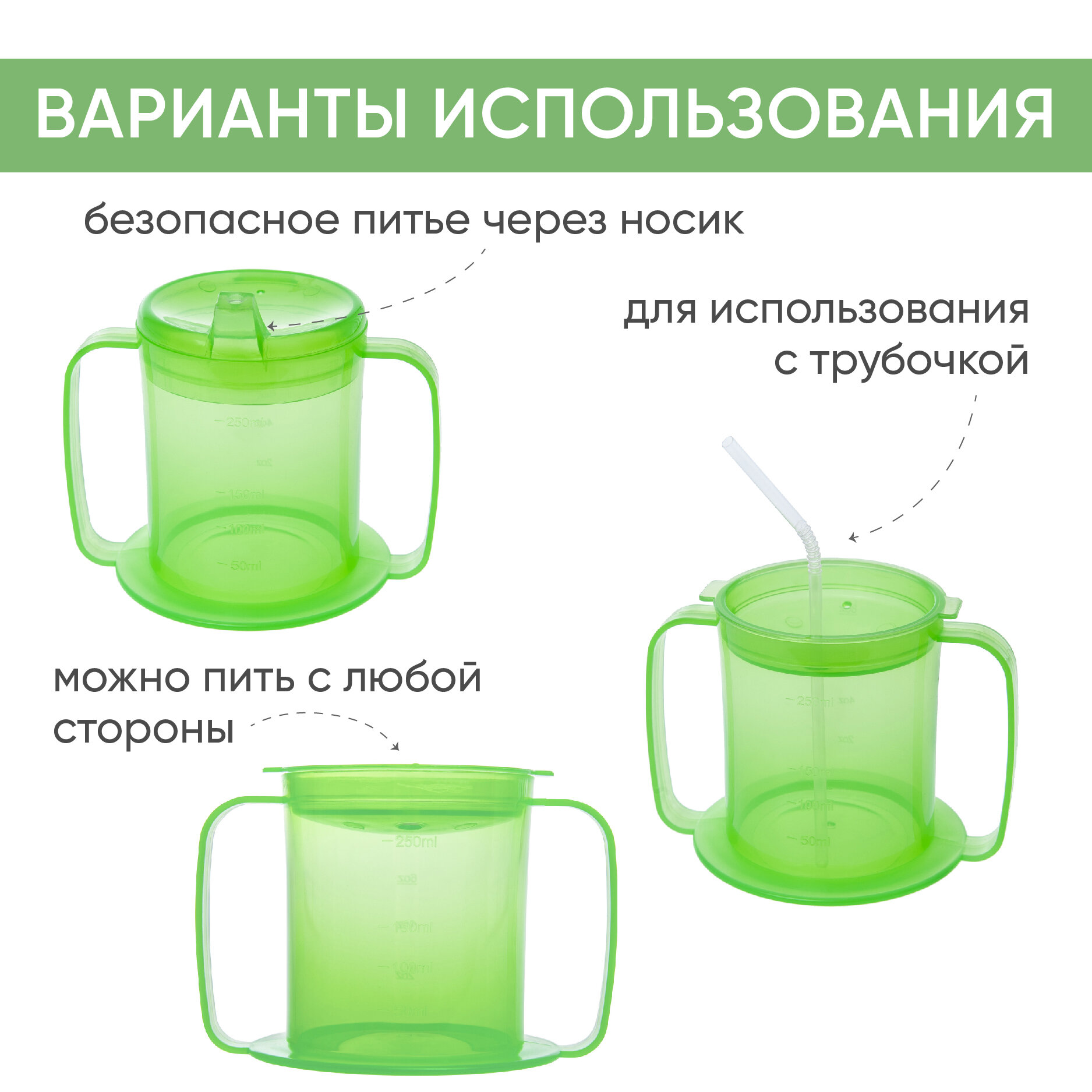 СохранитьПоильник медицинский BESIDE 250 мл, устойчивый стакан с ручками, две насадки в комплекте, для ухода за лежачими больными взрослыми и детьми, зеленый интересное: