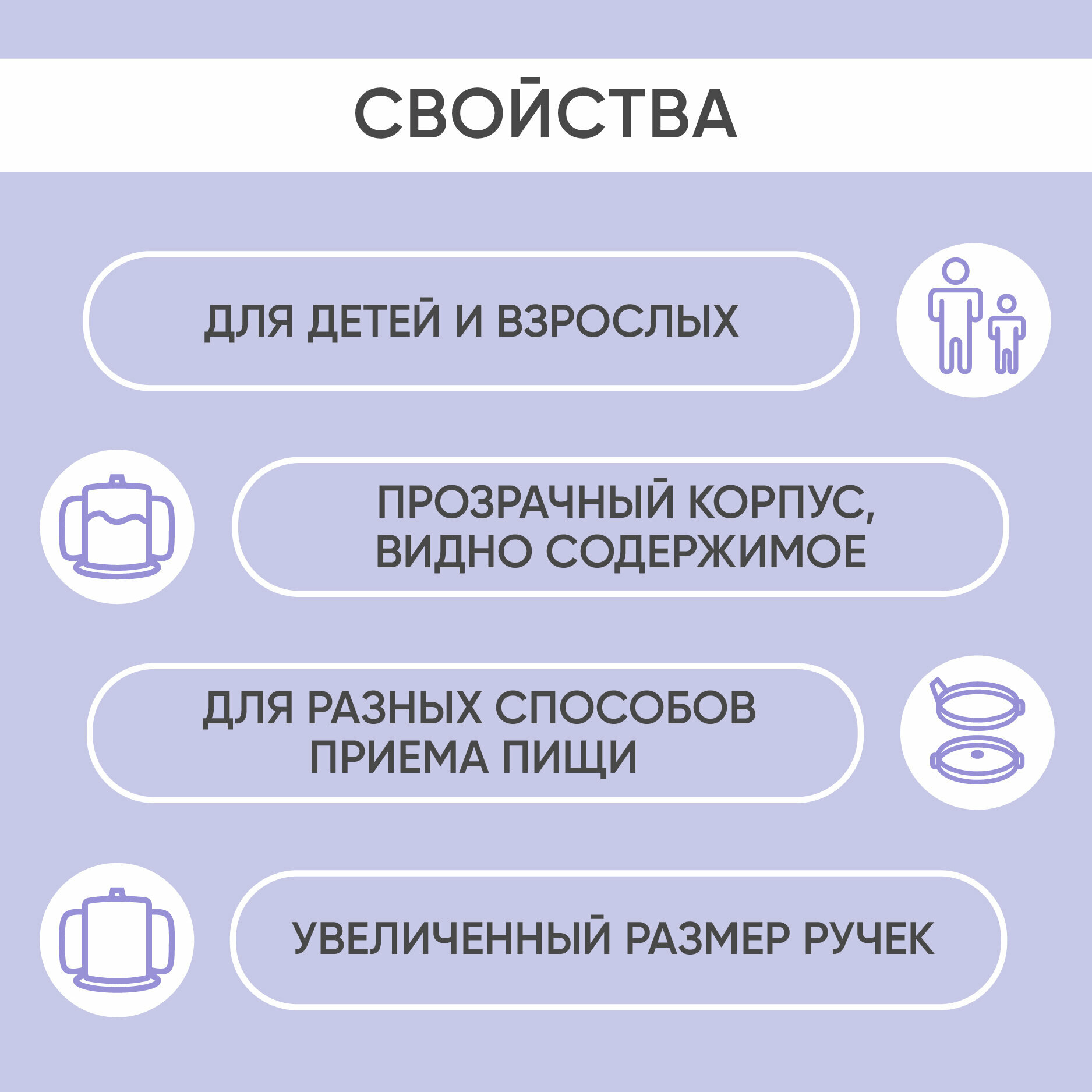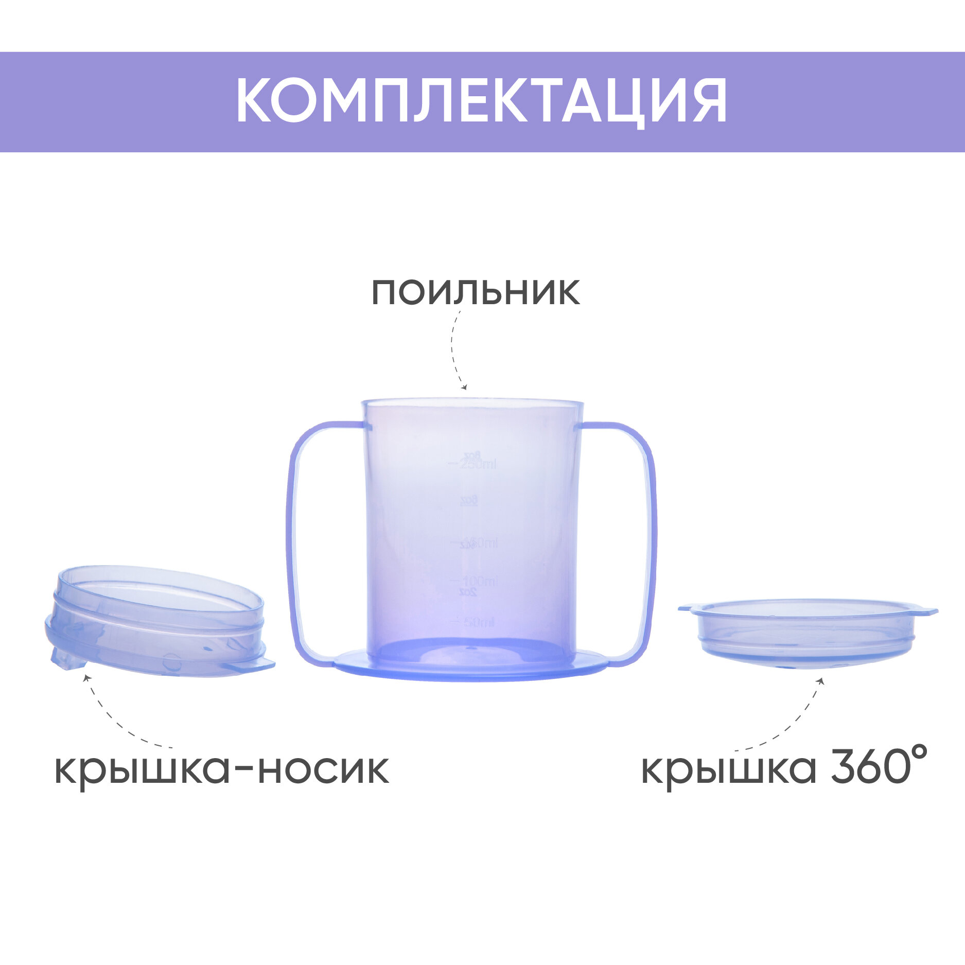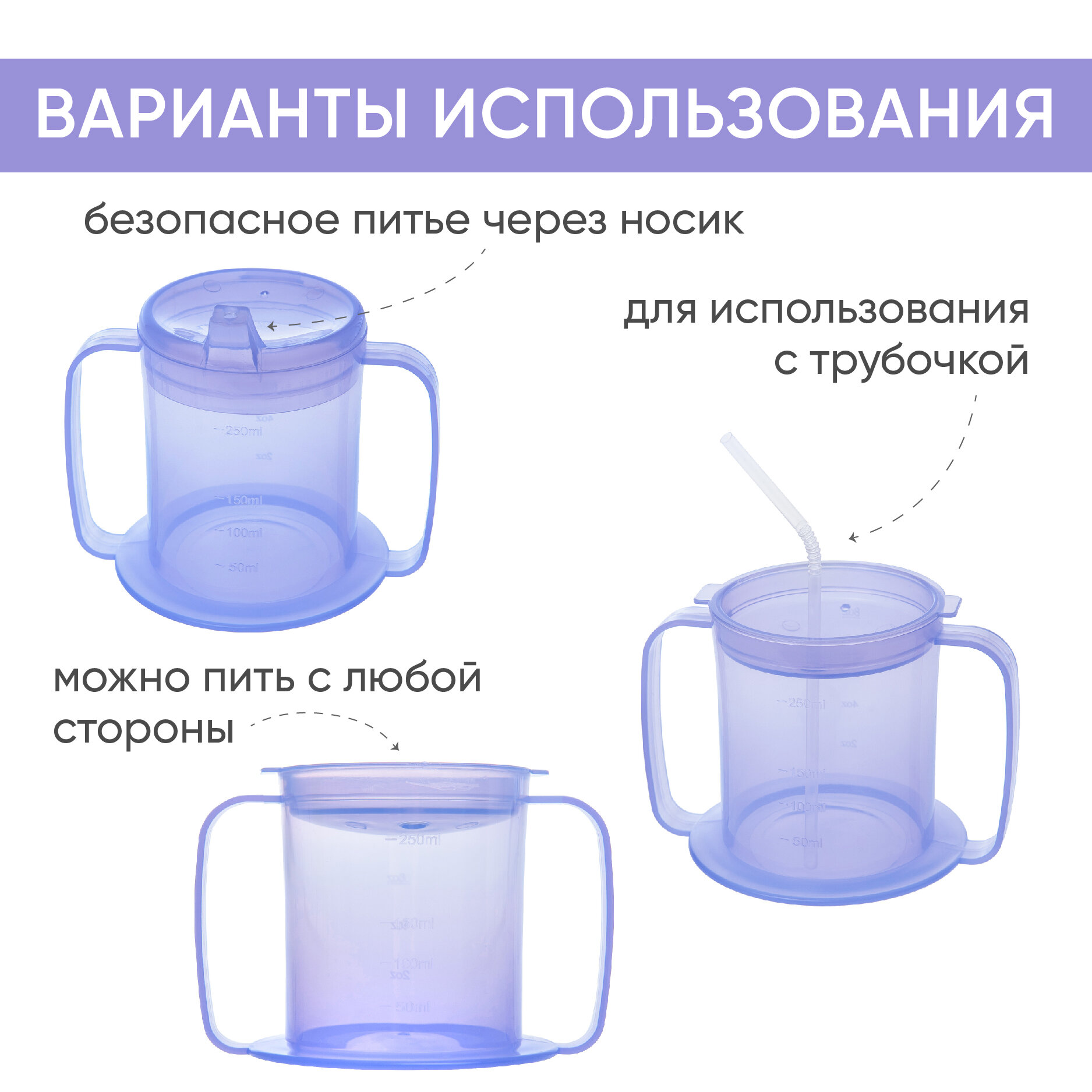 Купить Поильник медицинский BESIDE 250 мл, устойчивый стакан с ручками, две насадки в комплекте, для ухода за лежачими больными взрослыми и детьми, сиреневый