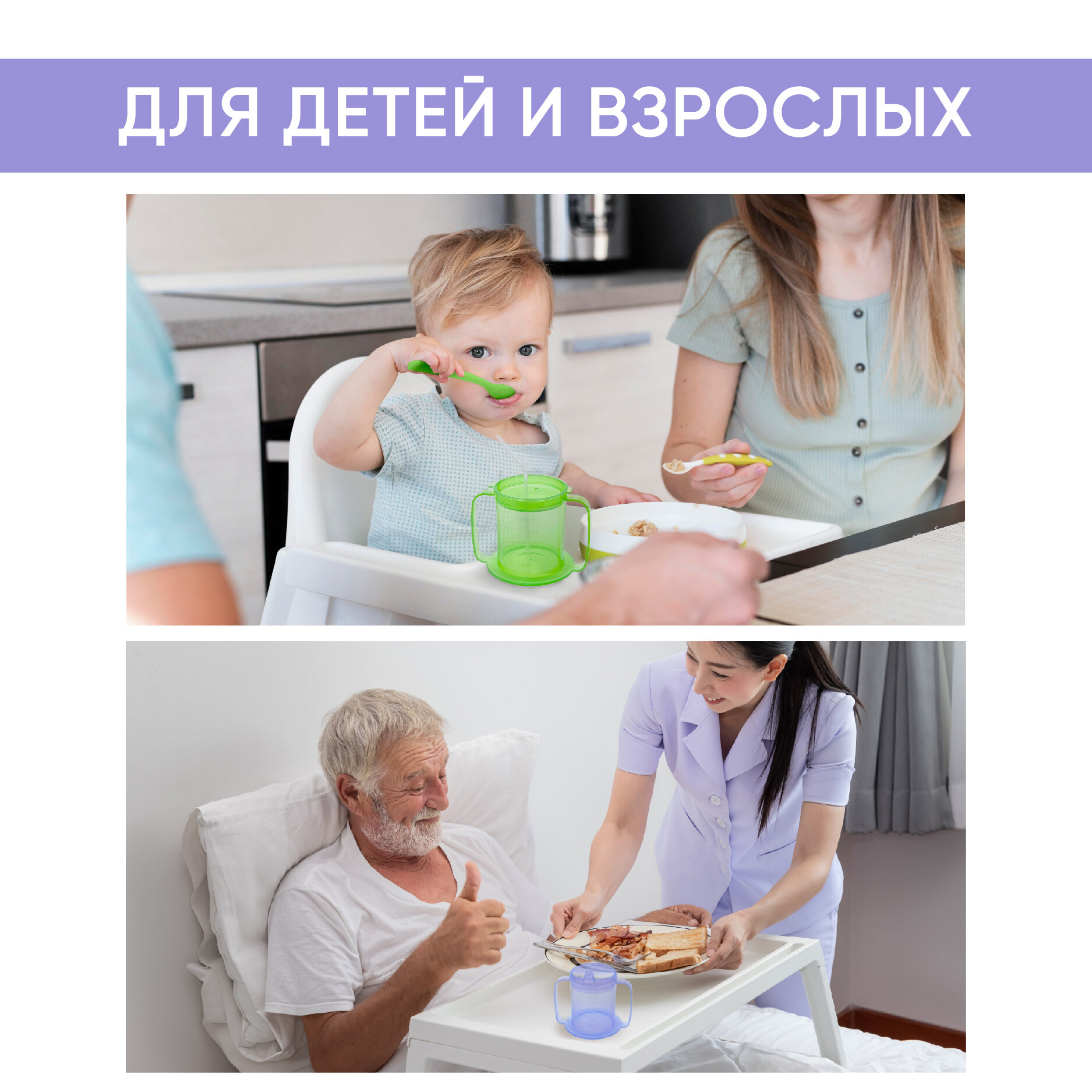 Поильник медицинский BESIDE 250 мл, устойчивый стакан с ручками, две насадки в комплекте, для ухода за лежачими больными взрослыми и детьми, зеленый