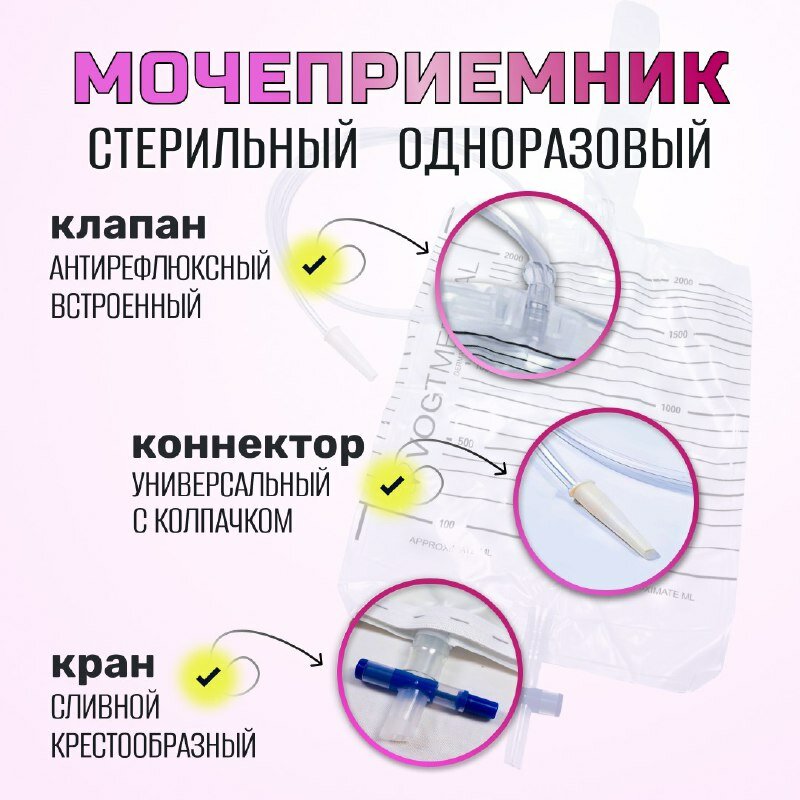 Мочеприемник прикроватный Vogt Medical (Германия) 1000 мл с Крестообразным сливным клапаном. Набор 10шт. интересное: