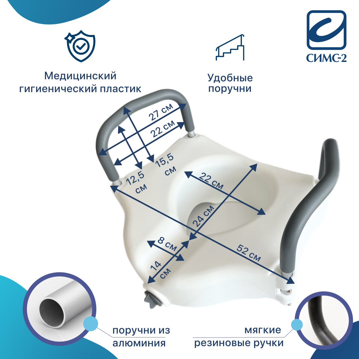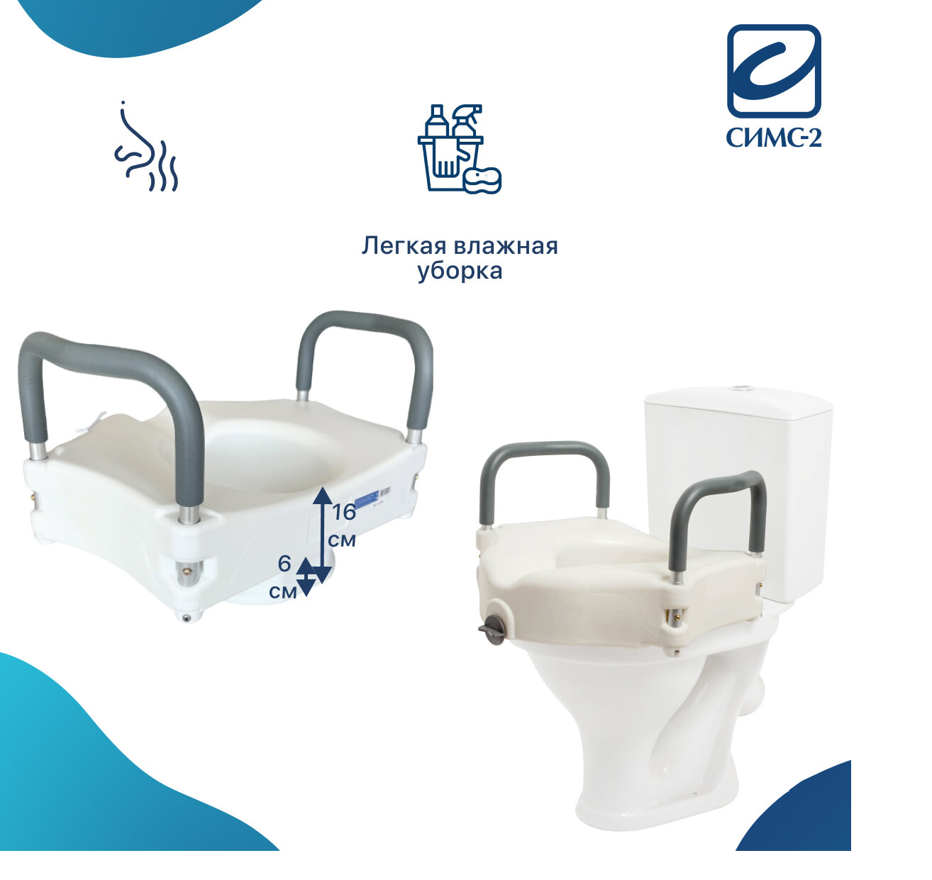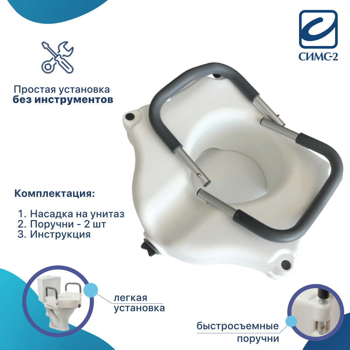 Насадка-сиденье для унитаза после операции с поручнями 10528 А/T увеличивает высоту унитаза на 12 см