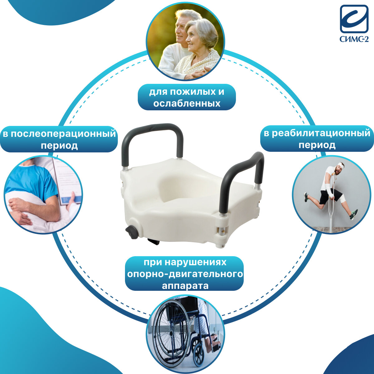 Насадка сиденье на унитаз для инвалидов и пожилых после операции, регулировка высоты 8-18 см. 10545