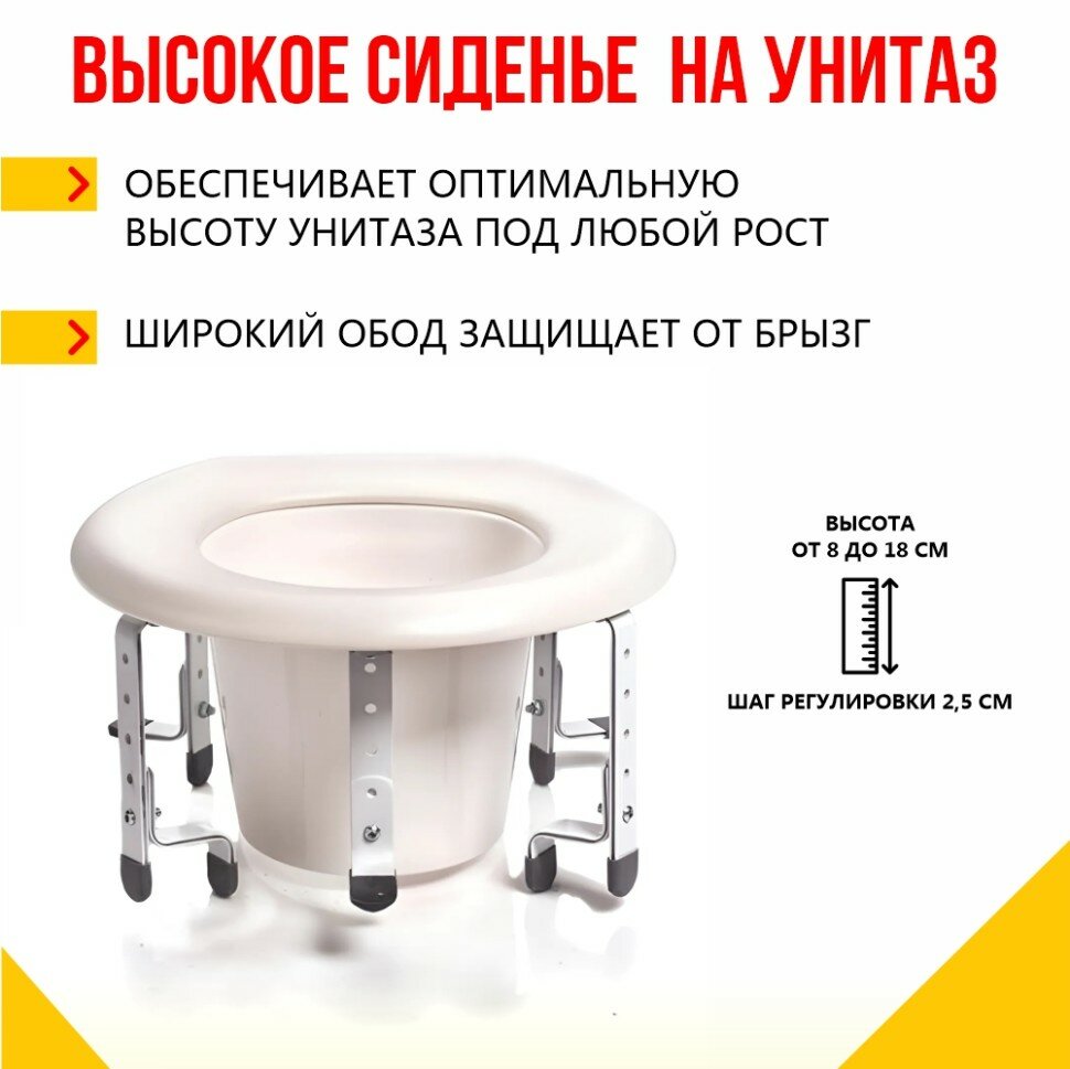 Насадка сиденье на унитаз для инвалидов и пожилых после операции, регулировка высоты 8-18 см. 10545