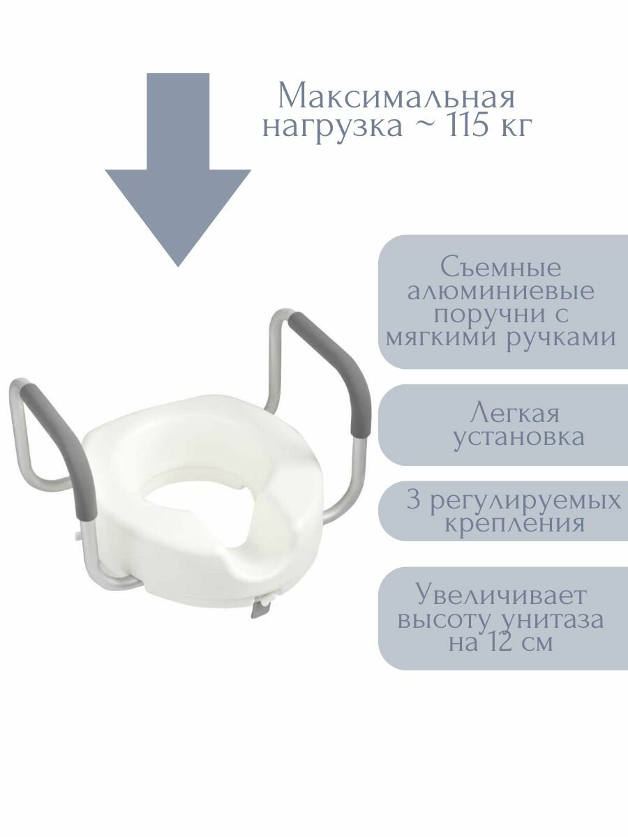Насадка-сиденье для унитаза после операции с поручнями 10528 А/T увеличивает высоту унитаза на 12 см