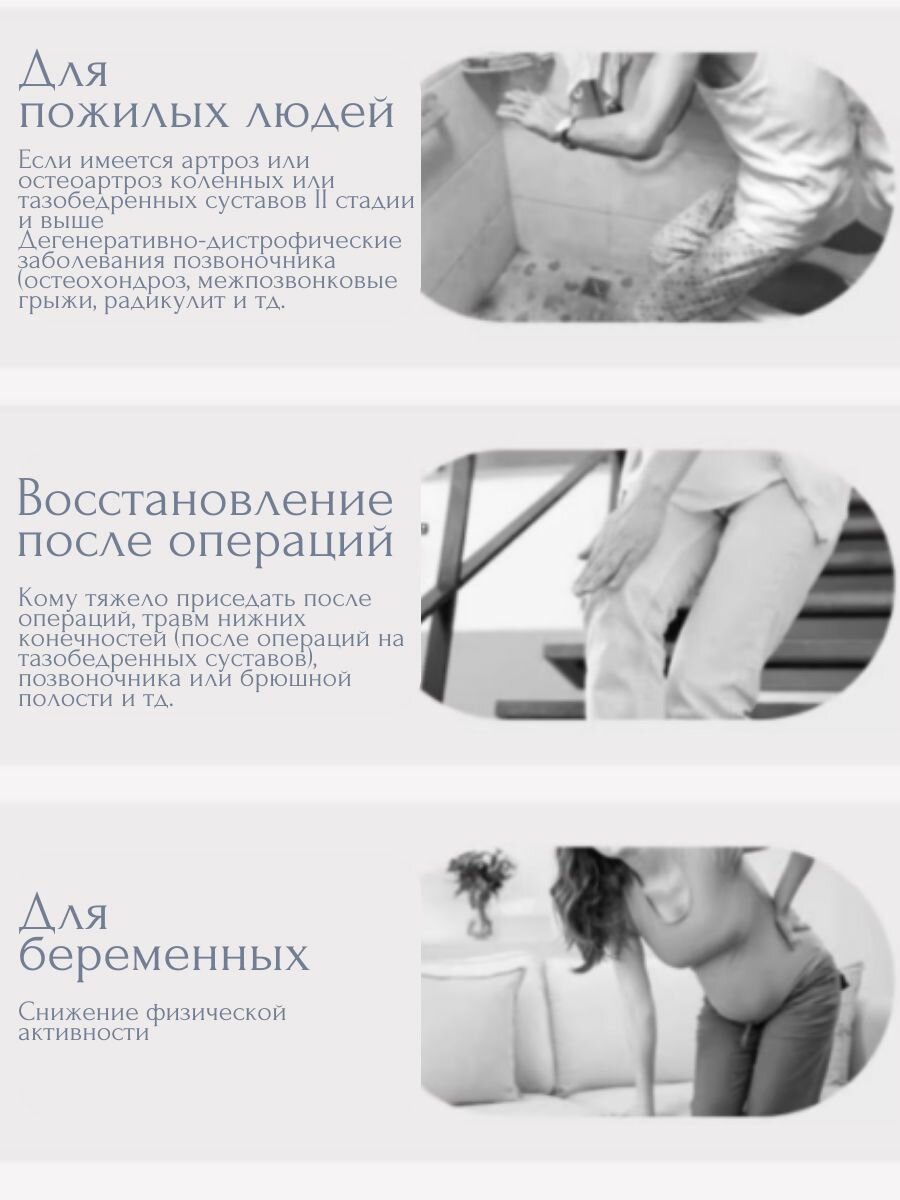 | Особенности | гигиенический вырез, противоскользящие насадки, регулировка высоты |