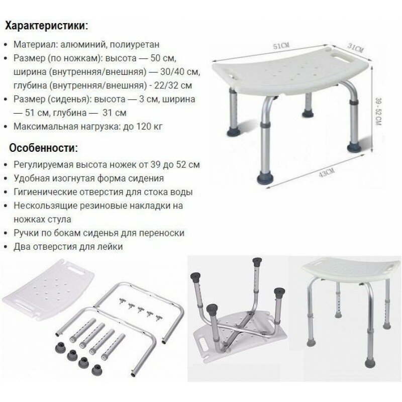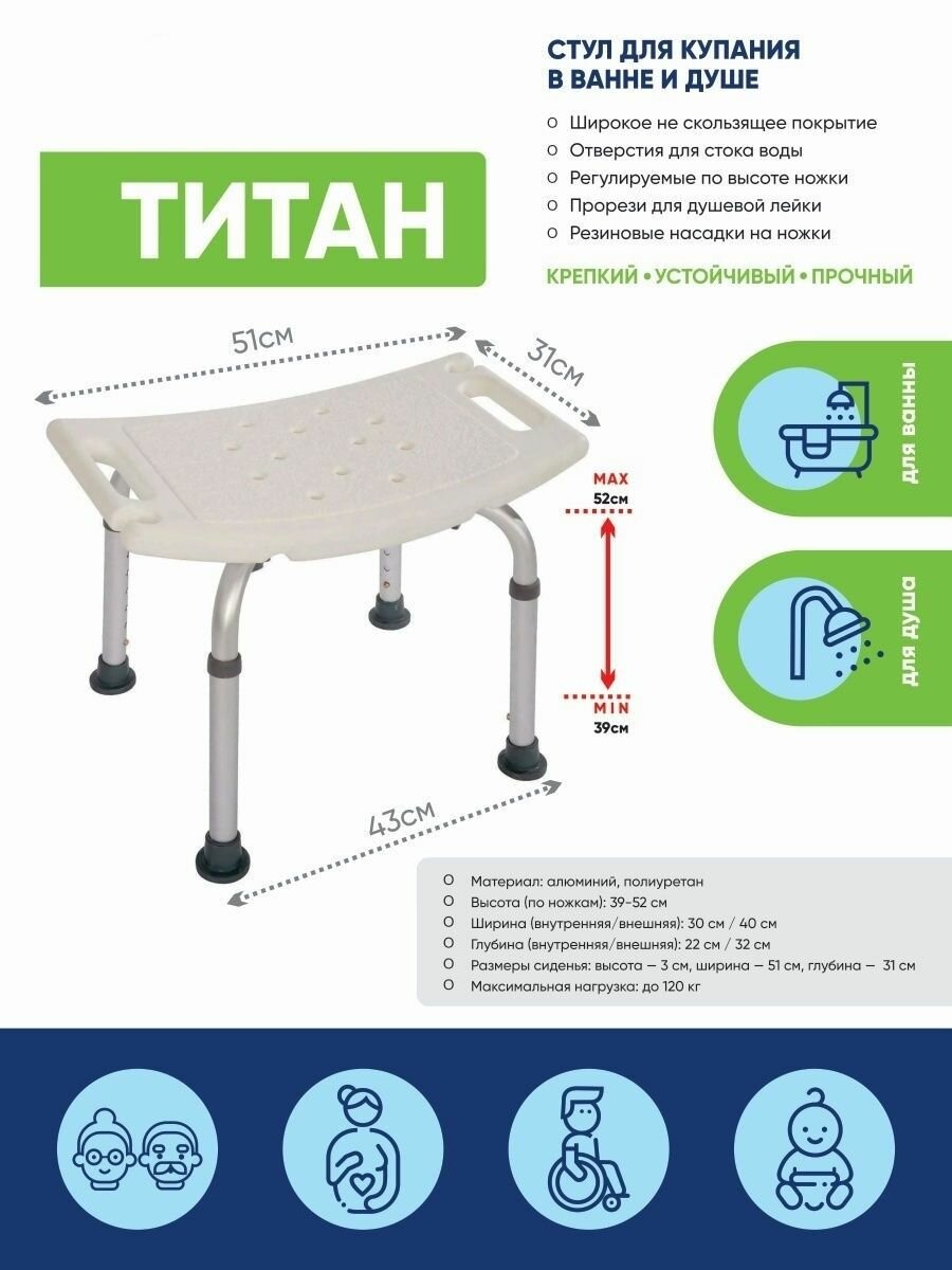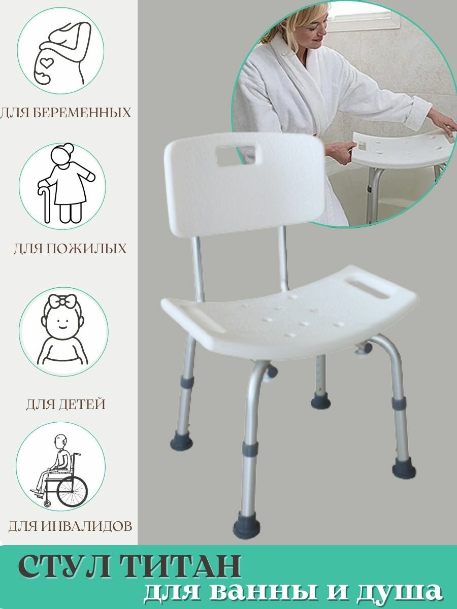 Стул для ванной и душа Титан "оригинал" для пожилых / для беременных / для детей интересное: