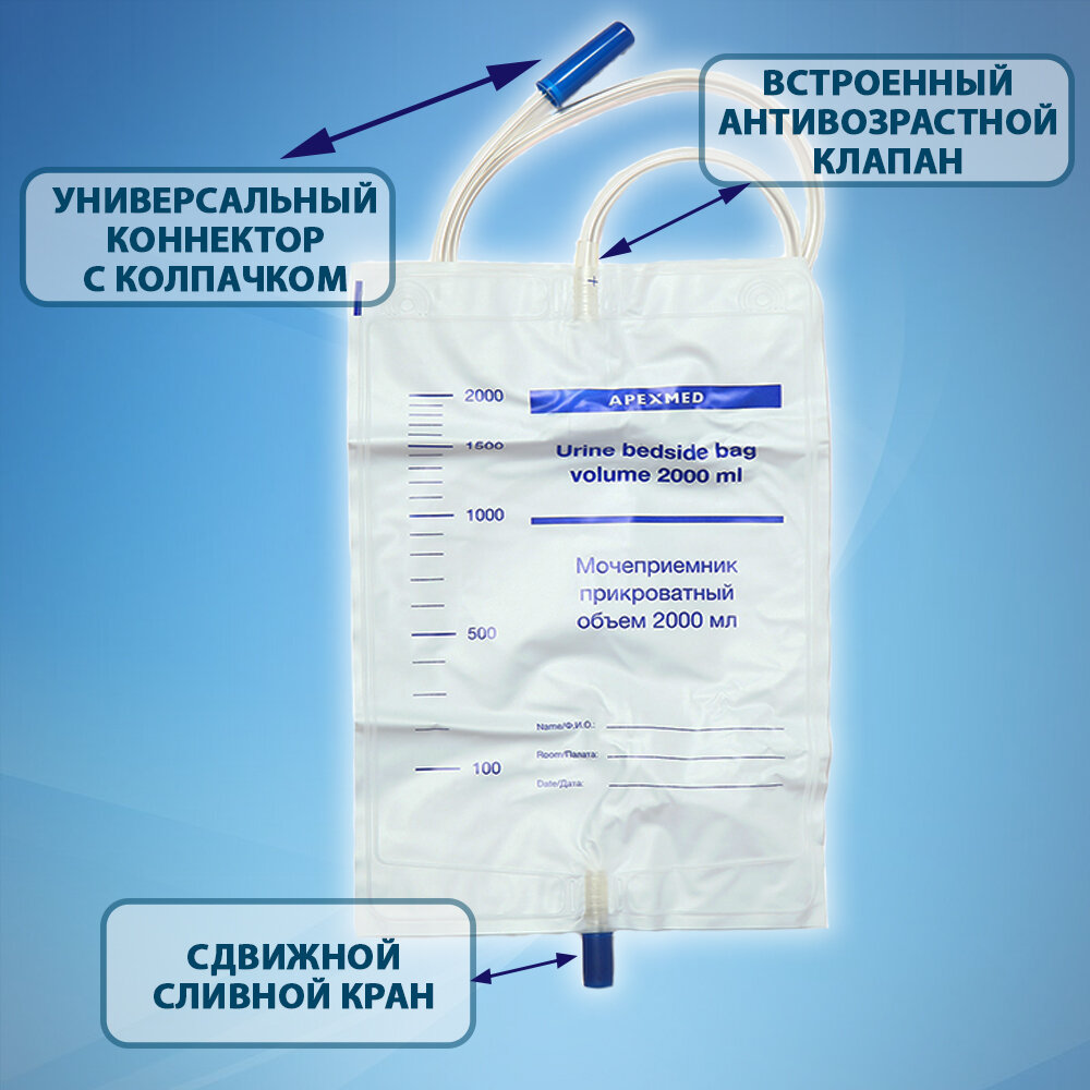 Мочеприемник прикроватный Apexmed 2000 мл, 10 шт интересное: