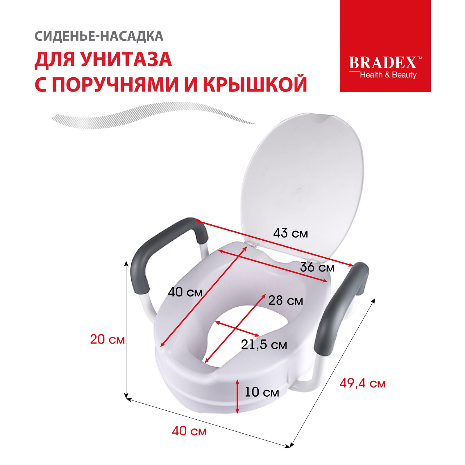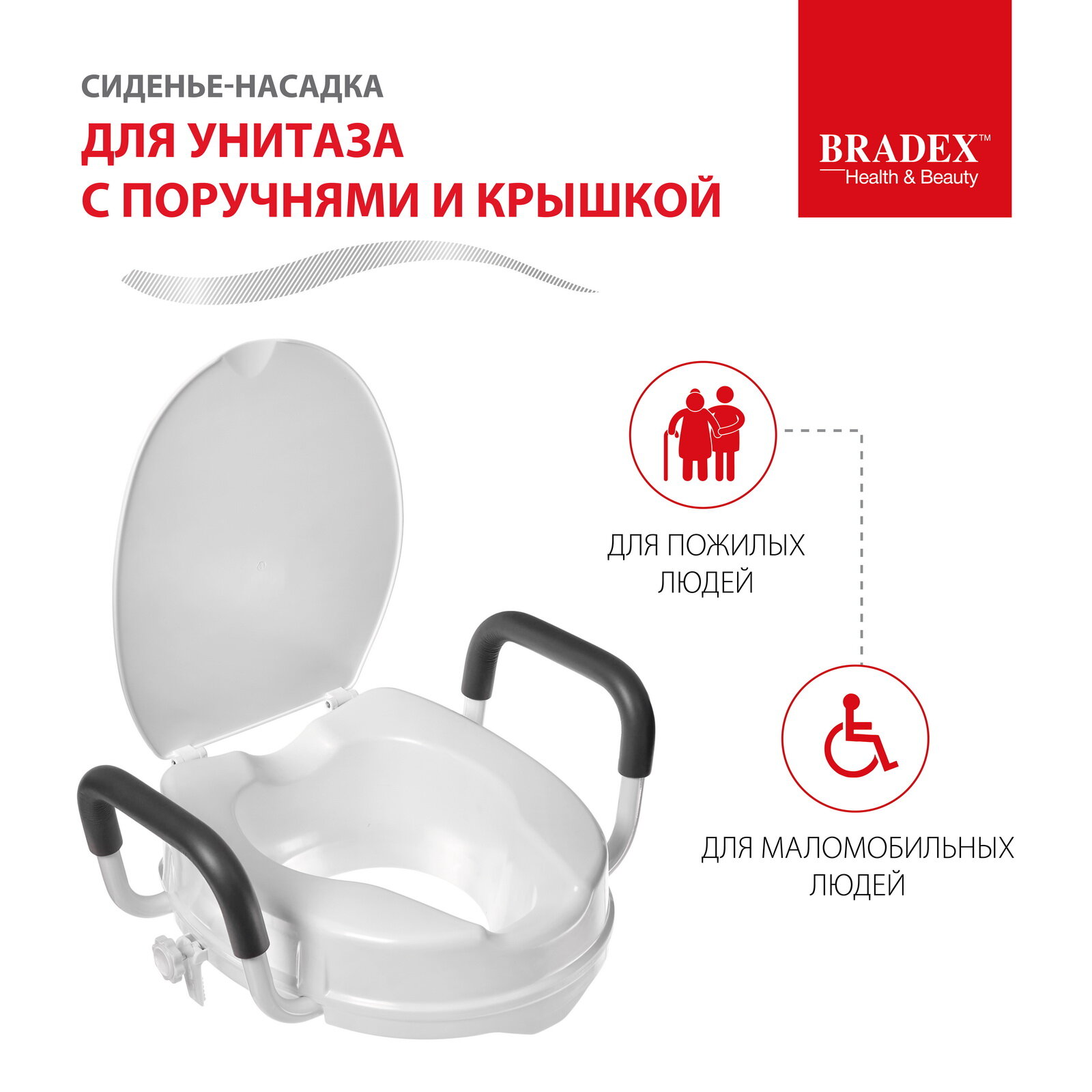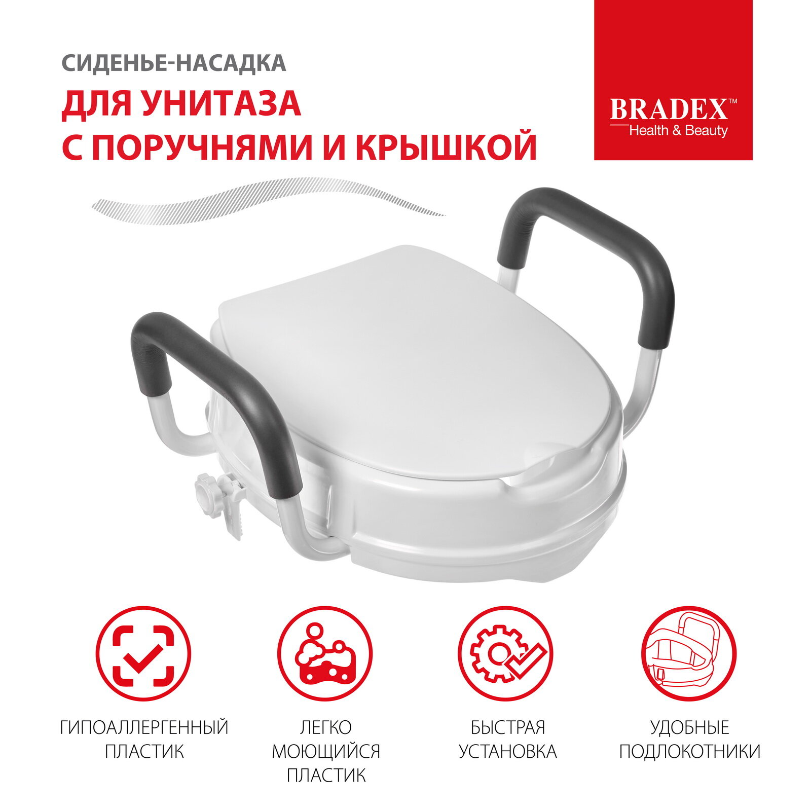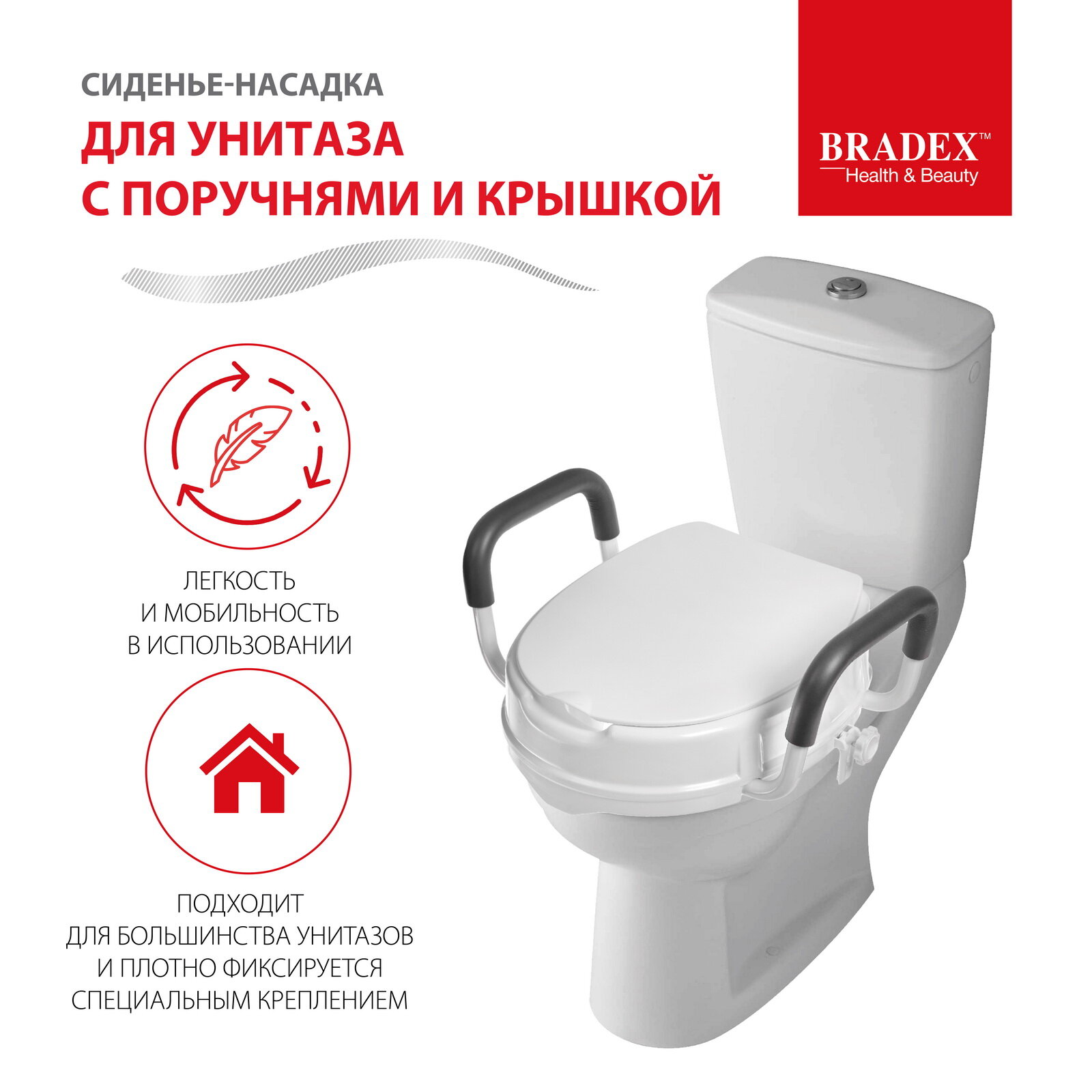 Сиденье насадка для унитаза Bradex, для пожилых людей и инвалидов, сидушка с крышкой и съемными поручнями интересное: