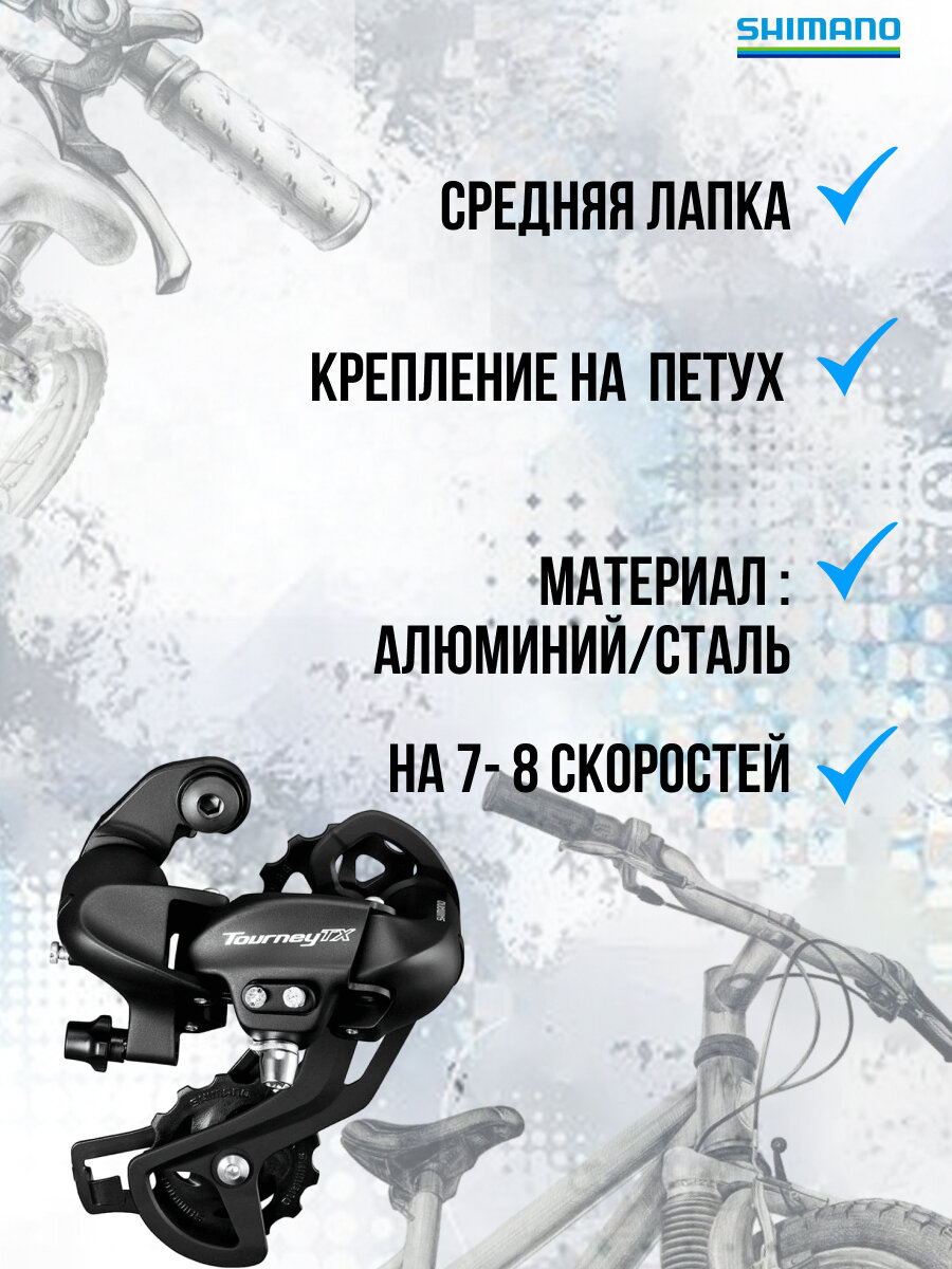 Переключатель задний TOURNEY, TX800, 7/8 скоростей, крепление на петух, черный SGS ERDTX800SGSL Индонезия SHIMANO
