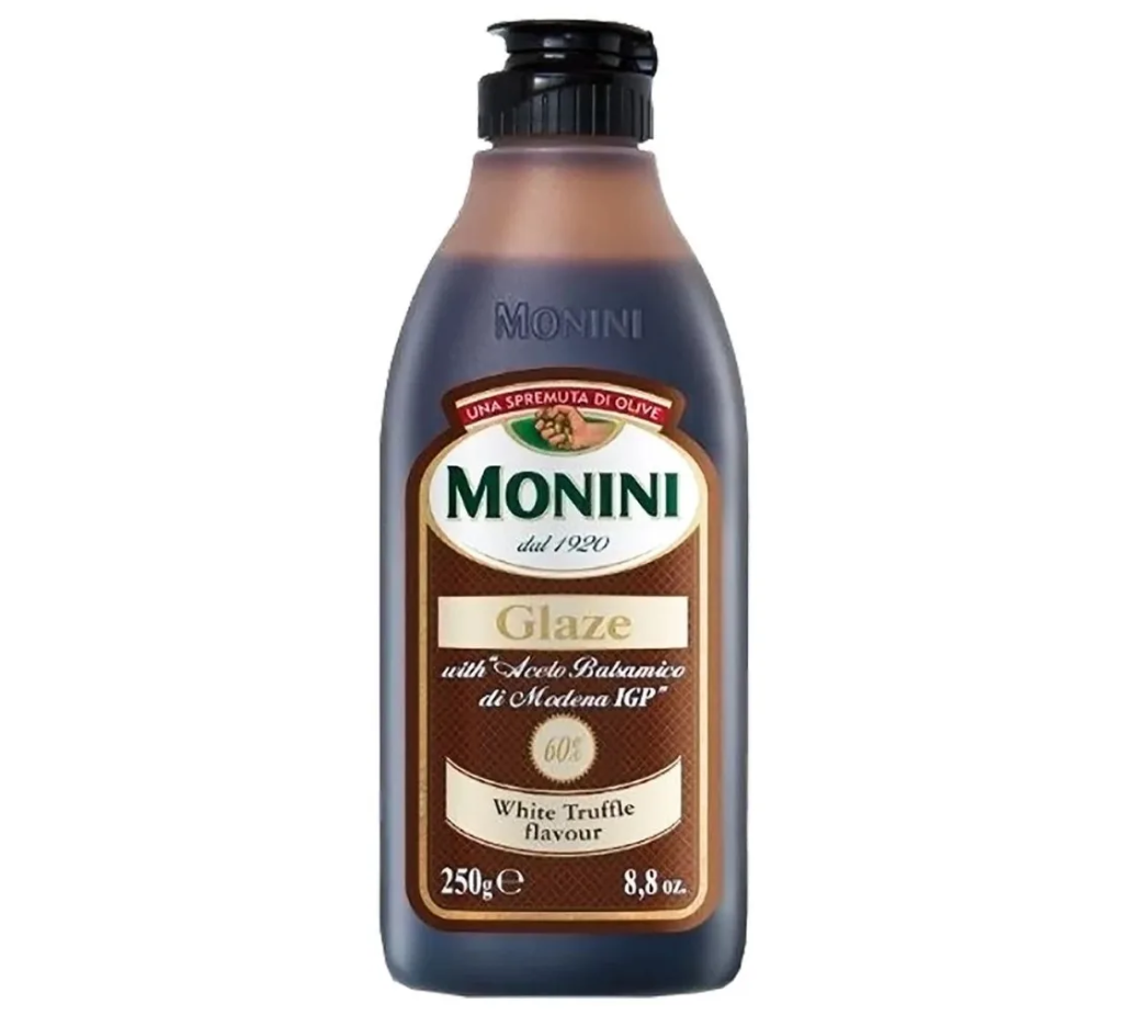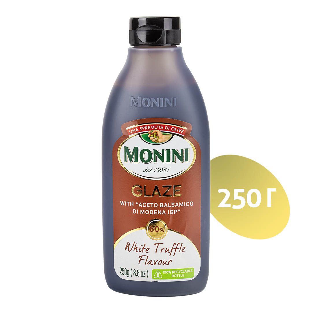 Уксус Monini Balsamic Glaze Бальзамический соус со вкусом белого трюфеля (глазурь), 0,25л интересное: