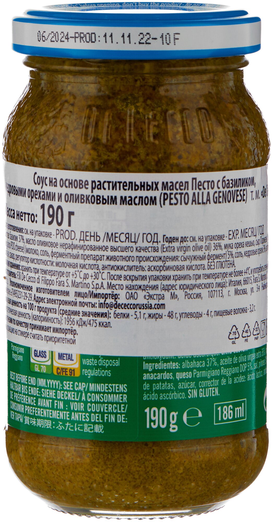 Соус De Cecco Pesto Alla Genovese Песто с базиликом кедровыми орехами и оливковым маслом 190 г интересное: