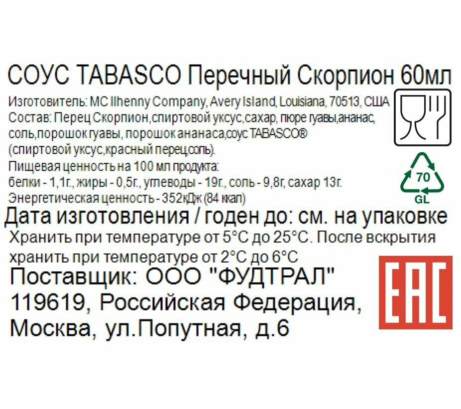 Ниже Вы можете прочитать отзывы на Набор соусов Tabasco (Red + Green + Chipotle + Habanero + Scorpion), США, 5*60 мл, ознакомится с подробными характеристиками, посмотреть интересные обзоры и фотографии на Набор соусов Tabasco (Red + Green + Chipotle + Habanero + Scorpion), США, 5*60 мл.