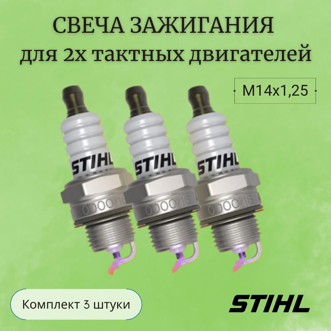 Свеча зажигания STIHL М14х1,25 мм для 2-х тактных двигателей, комплект - 3 шт. интересное: