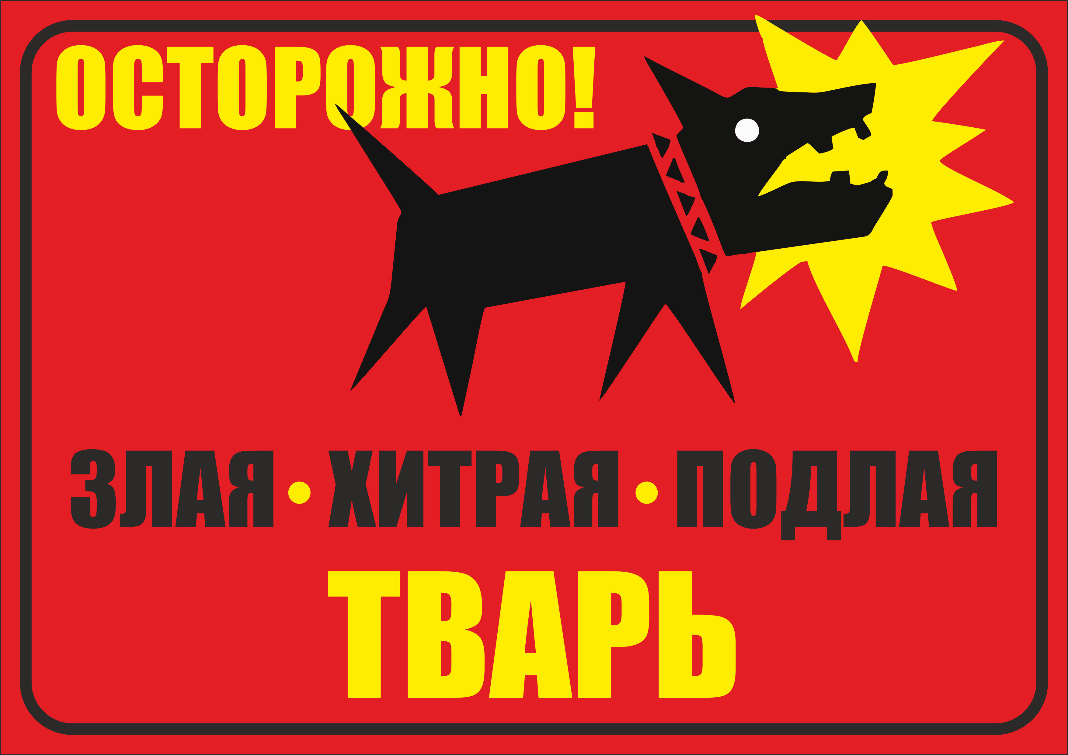 Табличка Осторожно злая собака,злая, хитрая, подлая 210297мм., А4 интересное: