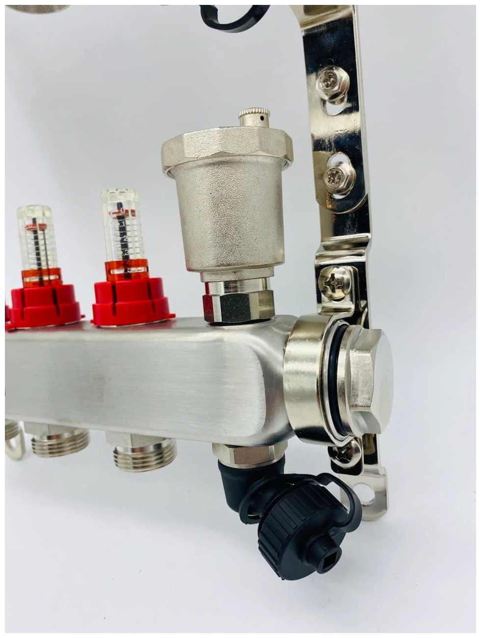 | Подробная комплектация | Коллекторная группа состроит из: Напорный коллектор с расходомерами - 1 шт. Обратный коллектор с запорными вентилями - 1 шт. Дренажные клапаны - 2 шт. Автоматический воздухоотводчик - 2 шт. Цельнометаллический кронштейн - 2 шт. Заглушки - 2 шт. |