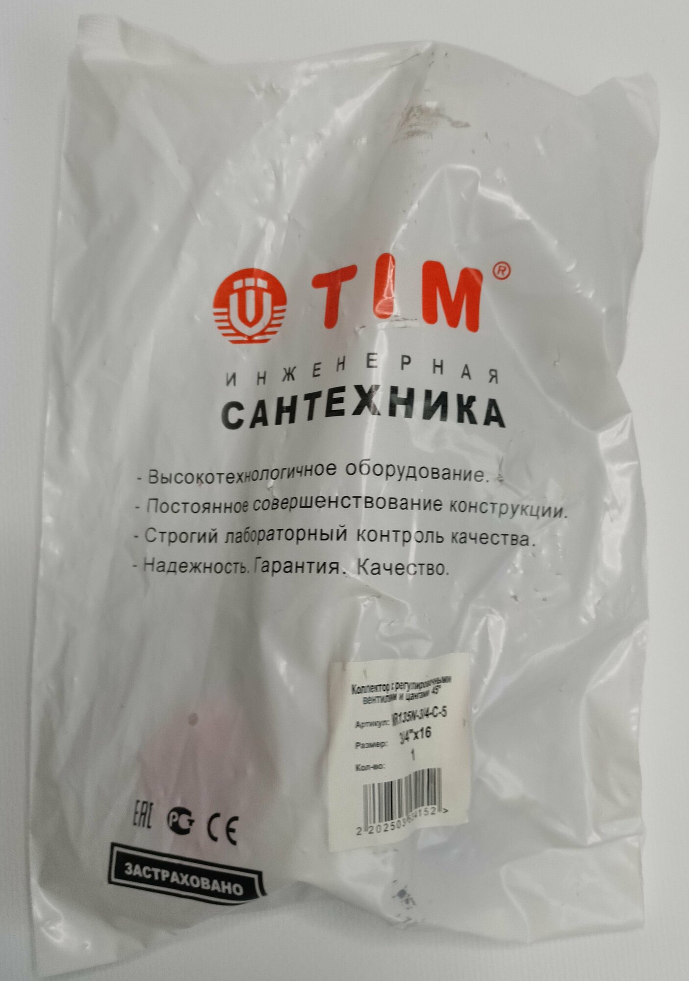 Коллектор TIM MR135N-3/4-C-2, 3/4"х16 мм, внутренняя/наружная, 2 выхода, 45°, с вентилями