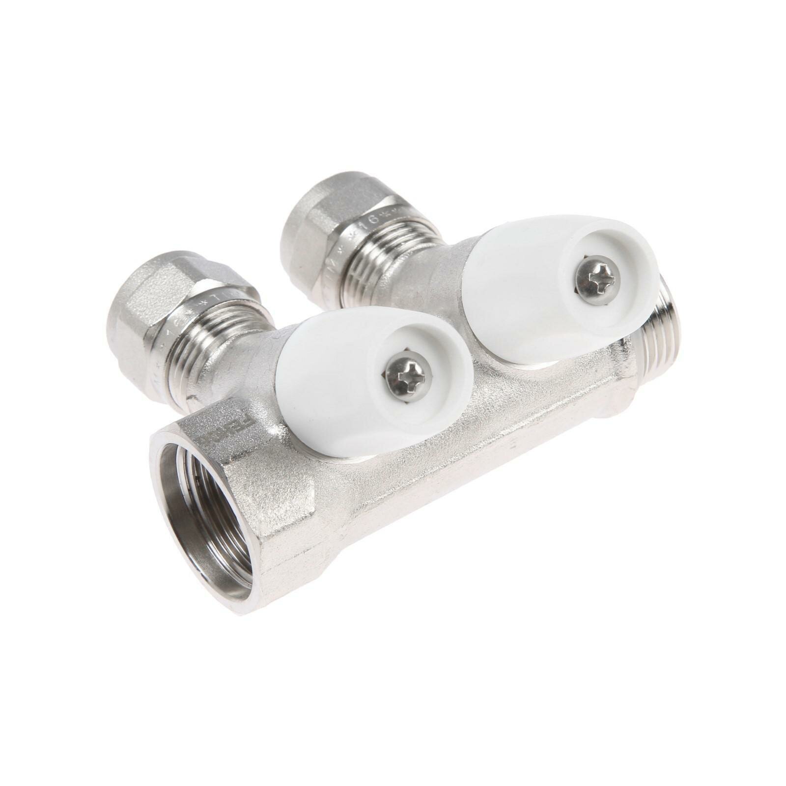 Коллектор TIM MR135N-3/4-C-2, 3/4"х16 мм, внутренняя/наружная, 2 выхода, 45°, с вентилями
