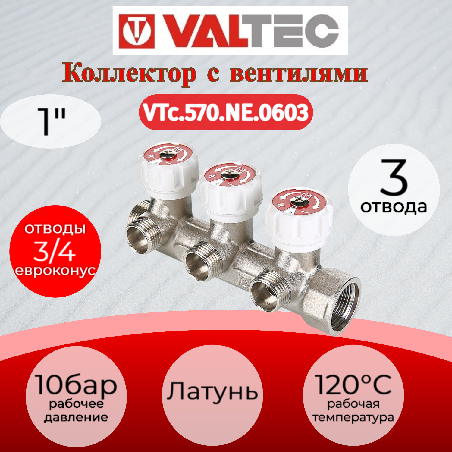 Коллектор с регул. вентилями, 1"х3 вых. Евроконус 3/4" (на подающий трубопровод) Valtec VTc.570.NE.0603 интересное: