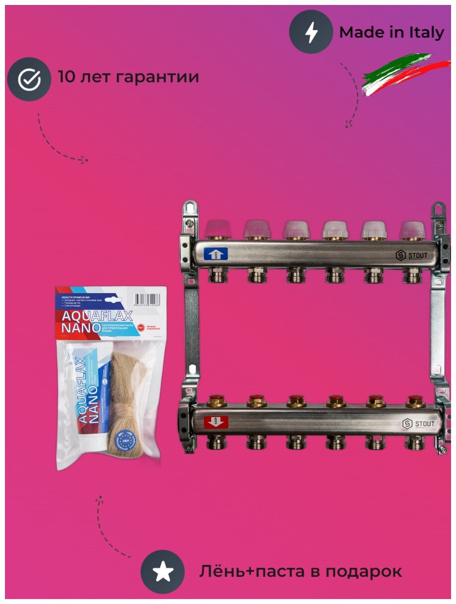 Коллектор из нержавеющей стали STOUT SMS 0922 000006 без расходомеров на 6 выхода