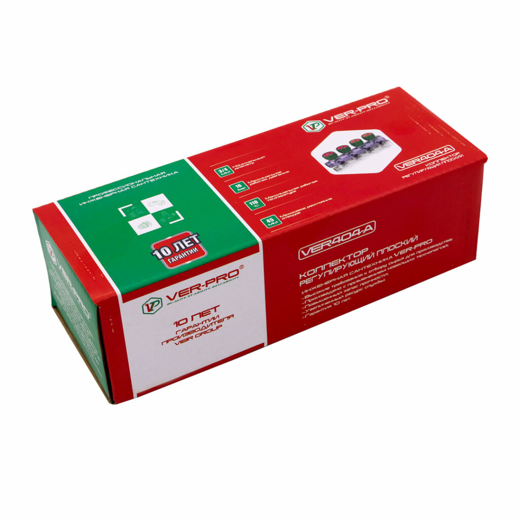 Купить Коллектор 3/4"х1/2"НР - 4 выхода плоский с регулировочными вентилями для водоснабжения хром VER404-A