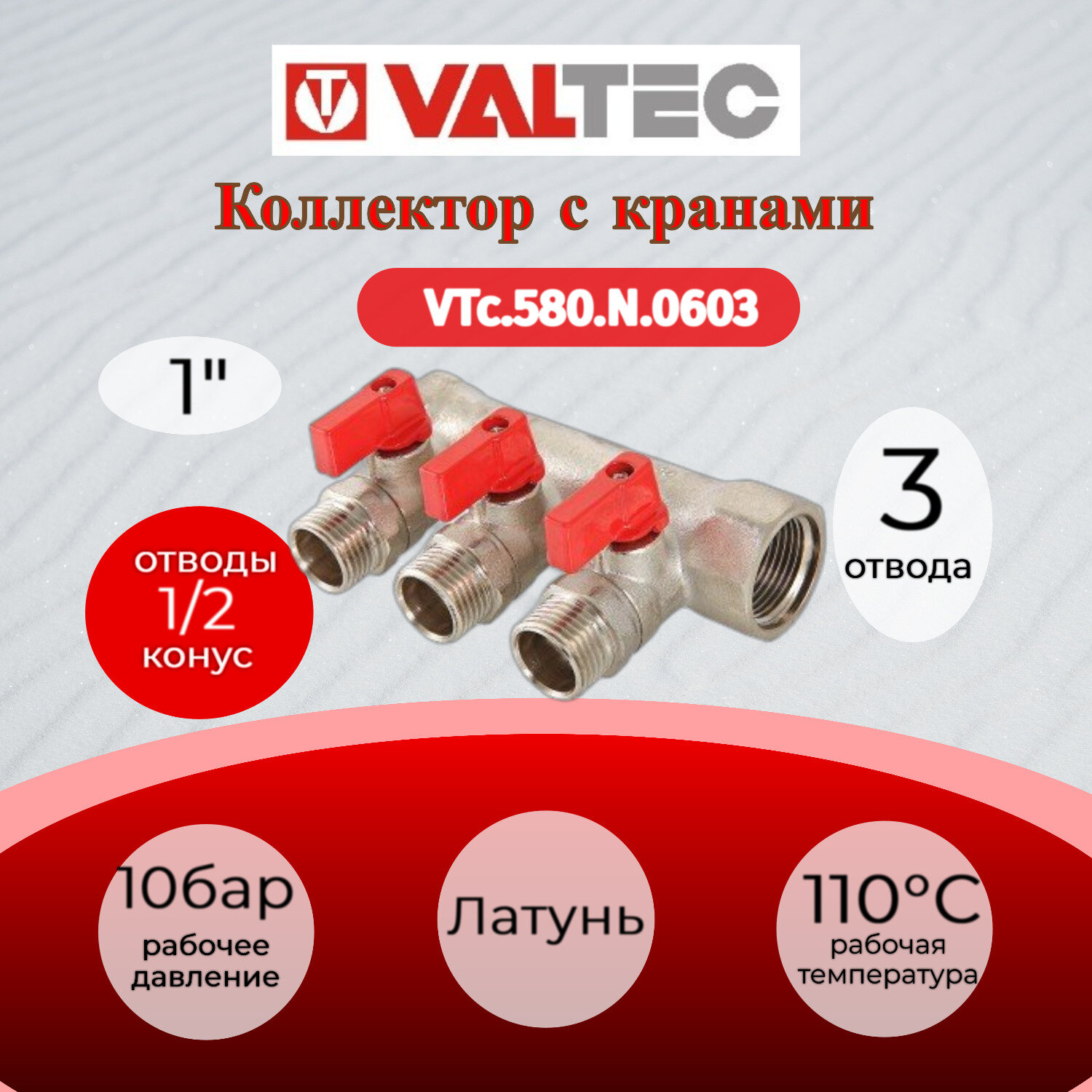 Коллектор с кранами 3 выхода х 1х 1/2 НР (1/20) Valtec VTc.580.N.0603 интересное:
