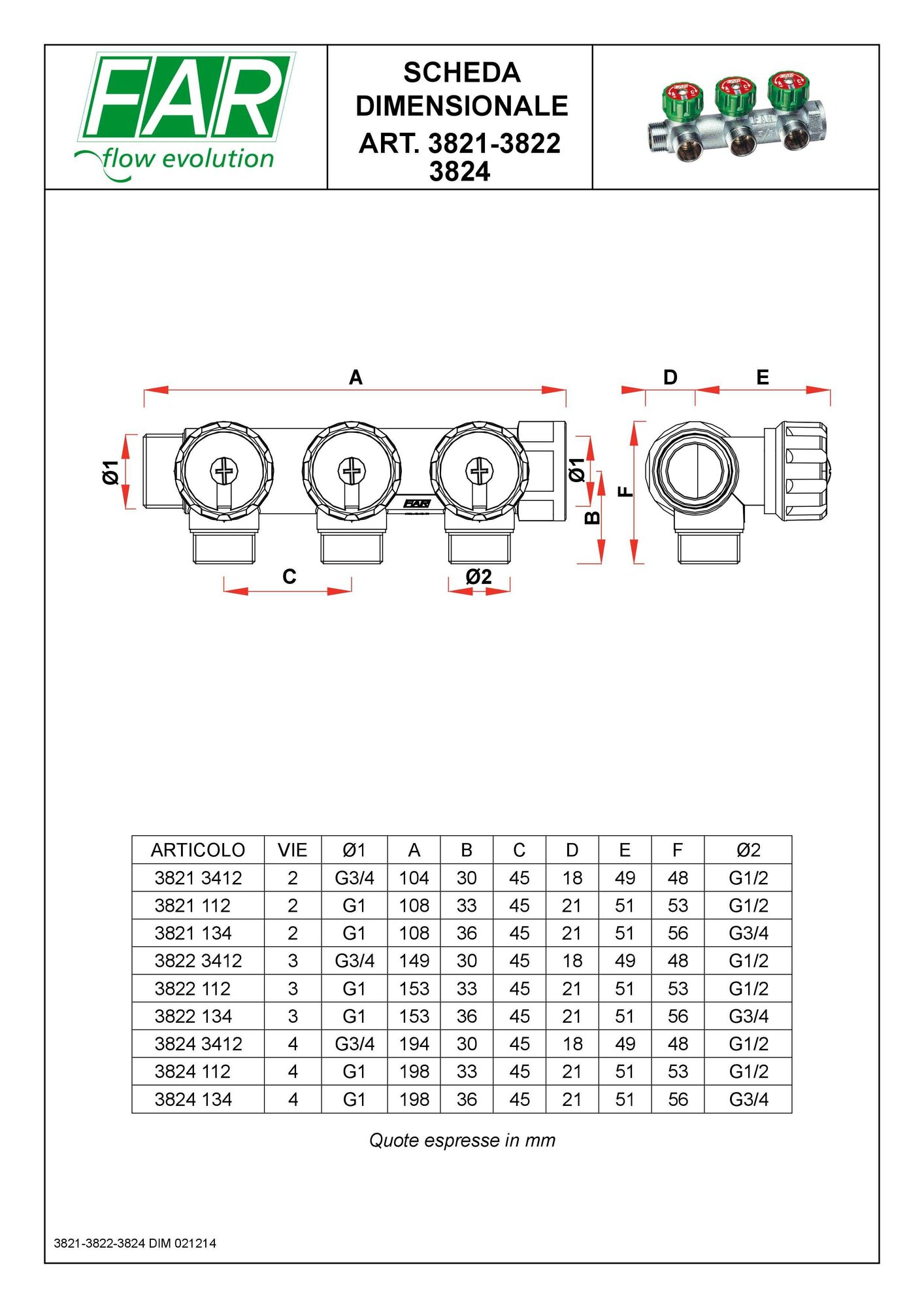 FAR Регулирующий проходной коллектор с 4 выходами FK 3824 134( Оригинал)