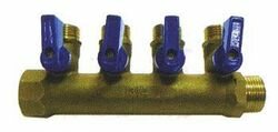 Коллектор 3/4"вр/нр х1/2"нр (4 выхода) GF (синий) с шаровыми отсекающими кранами, латунь, для труб металлопласт., сшитого полиэтилена интересное: