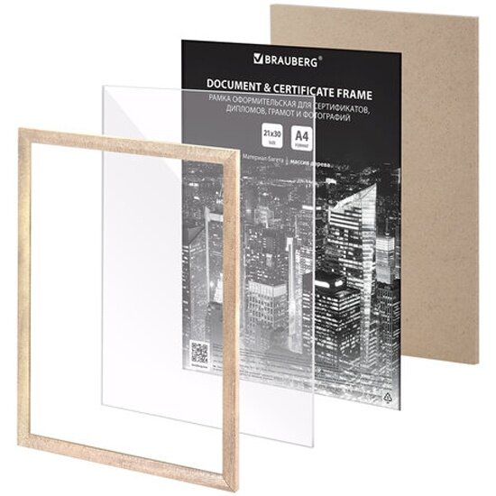 Рамка (фоторамка) для фотографий / картин / сертификата / диплома / грамот А4 21х30см, дерево, багет 14мм, акриловый экран, Brauberg Elegant, 391295