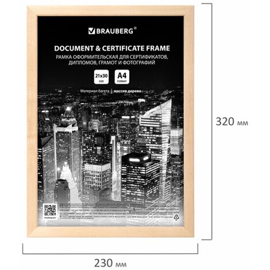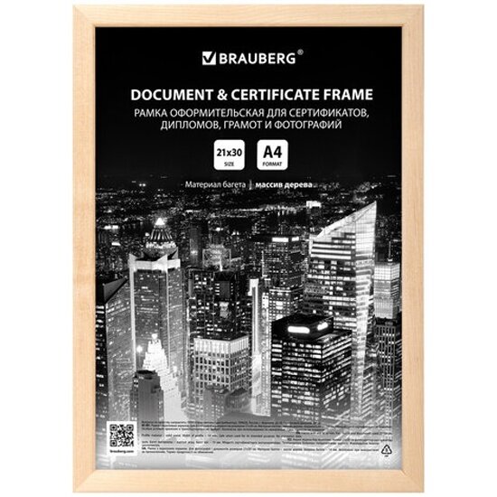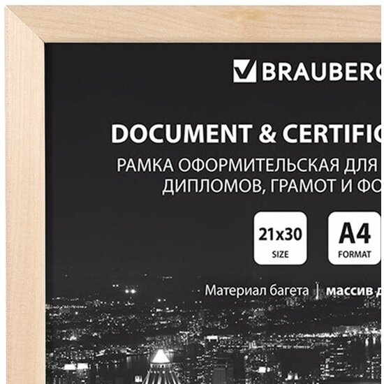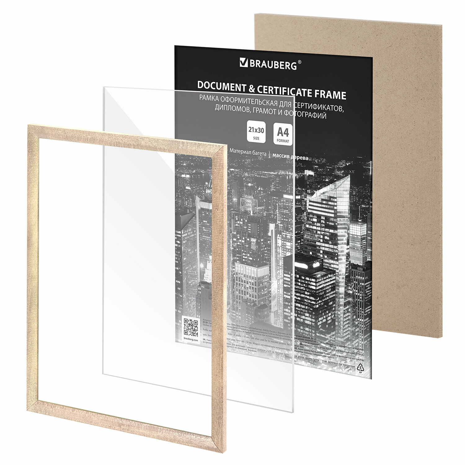 Рамка оформительская Brauberg 21х30 см, дерево, багет 14 мм, цвет натуральный (391296)