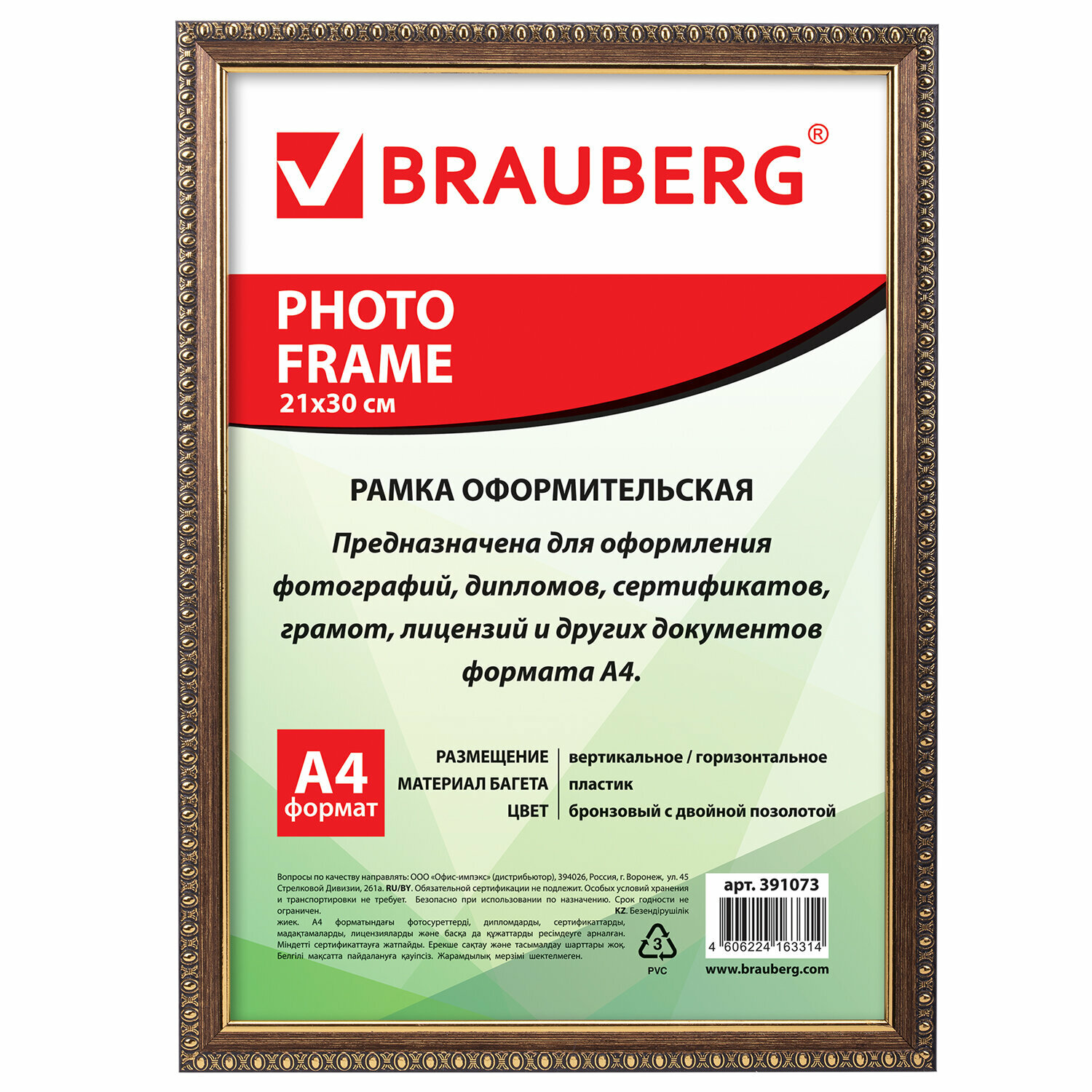 Купить Рамка 21х30 см, пластик, багет 16 мм, BRAUBERG "HIT5", бронза с двойной позолотой, стекло, 391073 (арт. 391073)