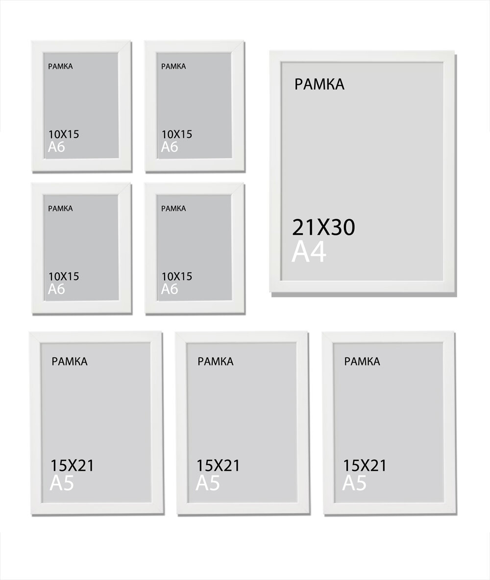 Купить Набор рамок для фото, комплект фоторамок 21х30, 15х21, 10х15, белые, 8 штук
