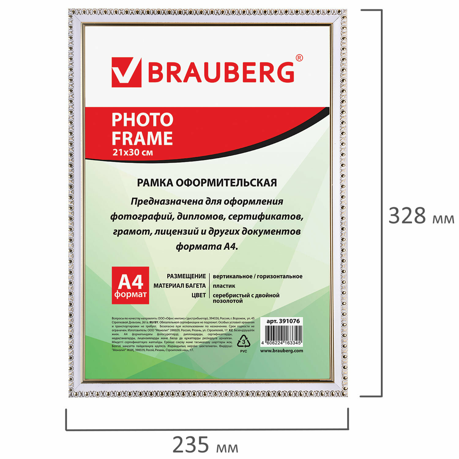 Фоторамка Brauberg "HIT3" 21х30 см, пластик, багет 20 мм, серебро, стекло