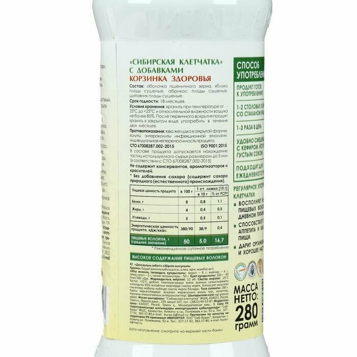 Сибирская клетчатка корзинка здоровья, 280 г 5618135 интересное: