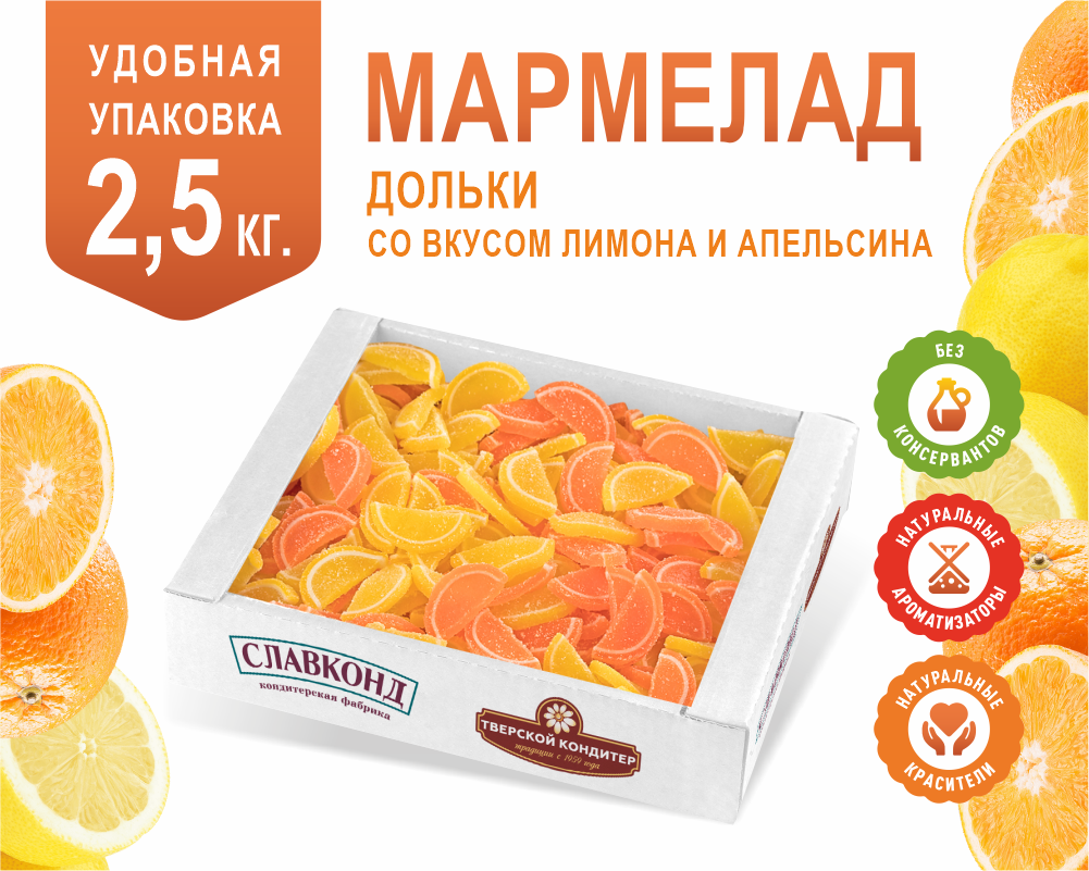 Мармелад желейный резаный Дольки Два цитруса 2,5 кг интересное: