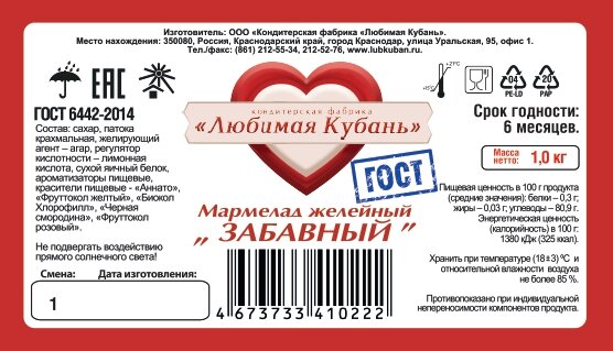 Мармелад Забавный 1 кг на агаре ГОСТ Любимая Кубань интересное: