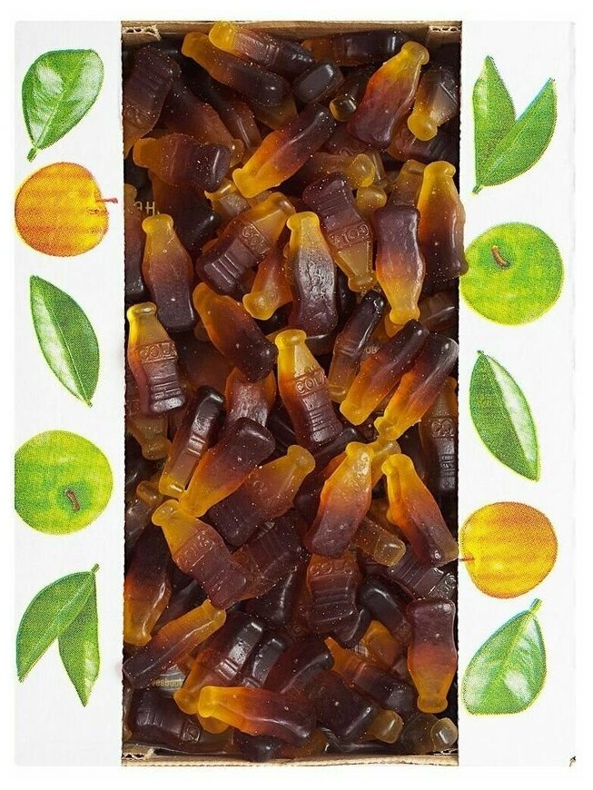 | Состав | патока, сахар, желатин, регулятор кислотности молочная кислота, сок яблочный концентрированный, краситель, ароматизатор "Кола" |