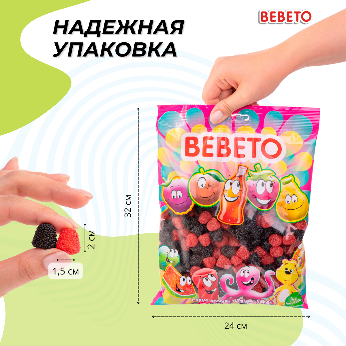 Мармелад жевательный Турция "Berries" Bebeto, Турция, без ГМО, вкус ежевики и малины, 1000 грамм.