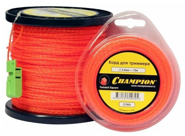 Корд триммерный Twisted Square, нож для отреза (2.4 мм, 450 м) CHAMPION C7018