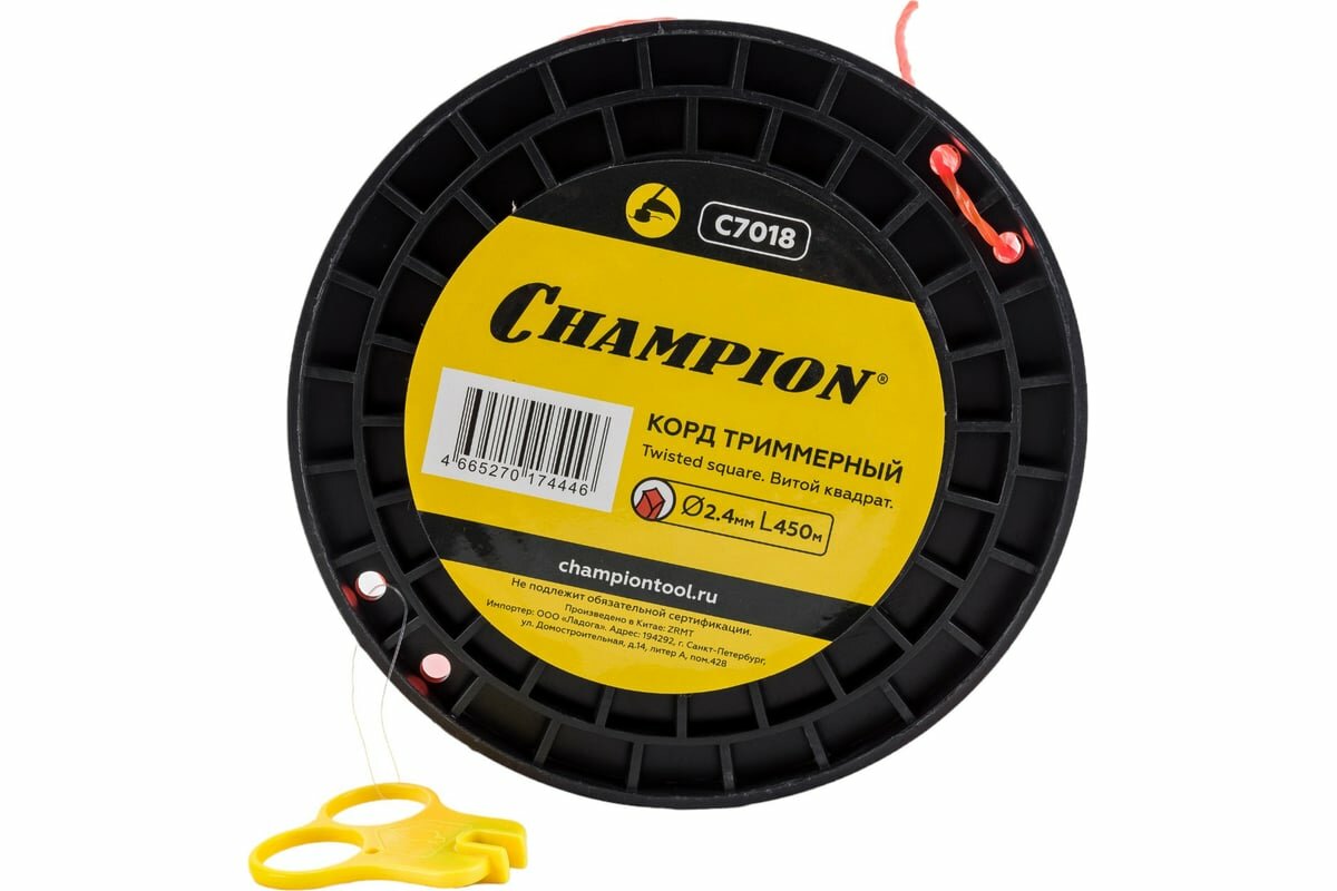 Корд триммерный Twisted Square, нож для отреза (2.4 мм, 450 м) CHAMPION C7018