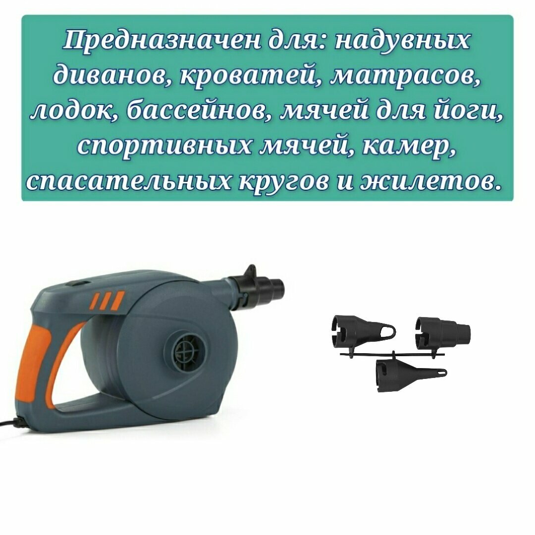 62257 BW, Bestway, Насос электрический 12В от прикуривателя, 680 л/мин, 3 насадки, уп.12