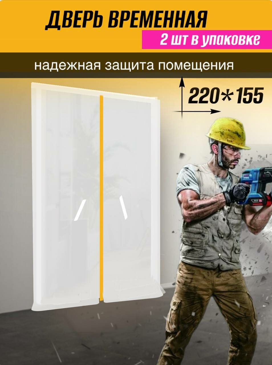 Временная пленочная дверь на молнии от пыли 220*155см 2шт в упаковке