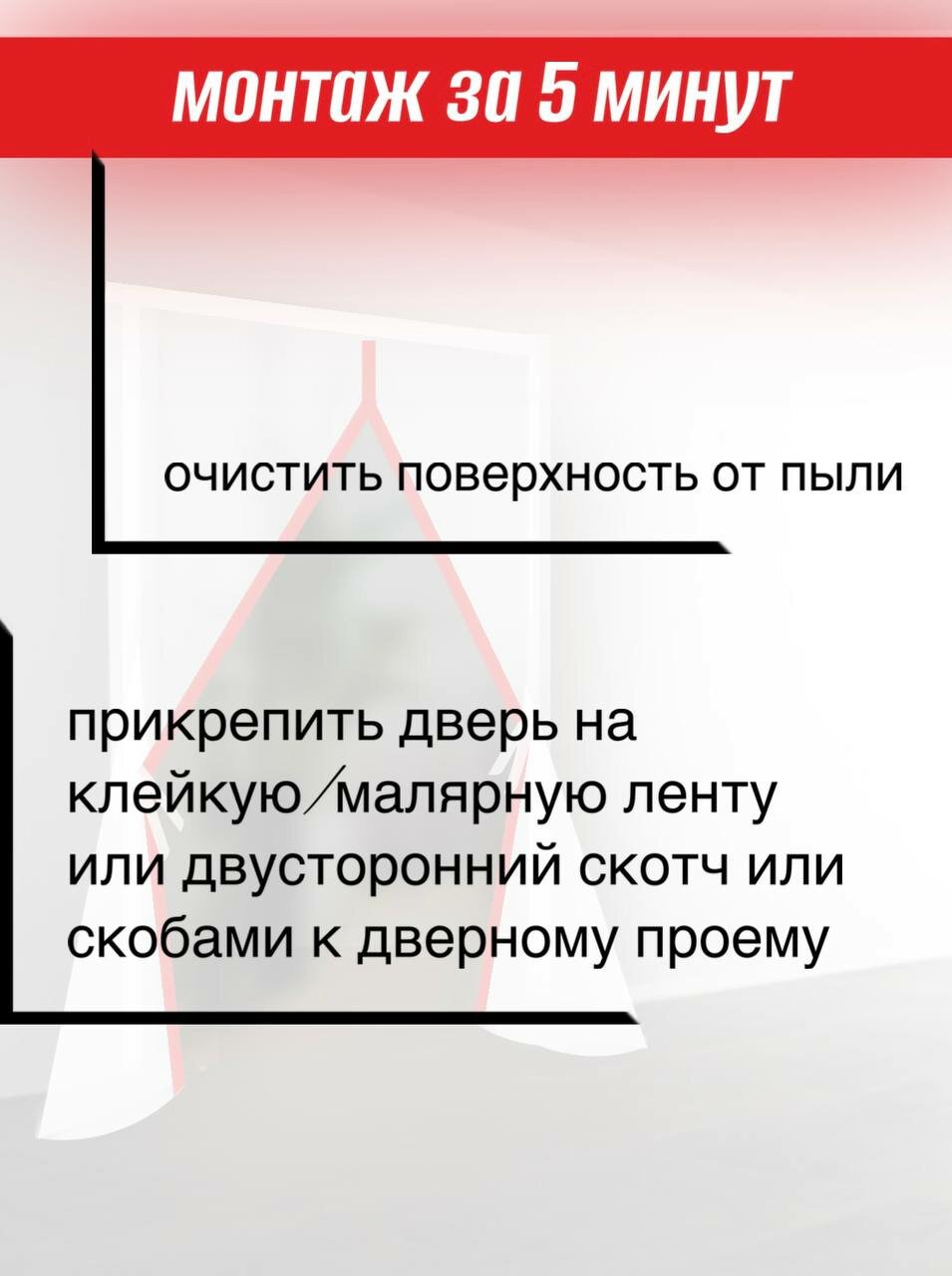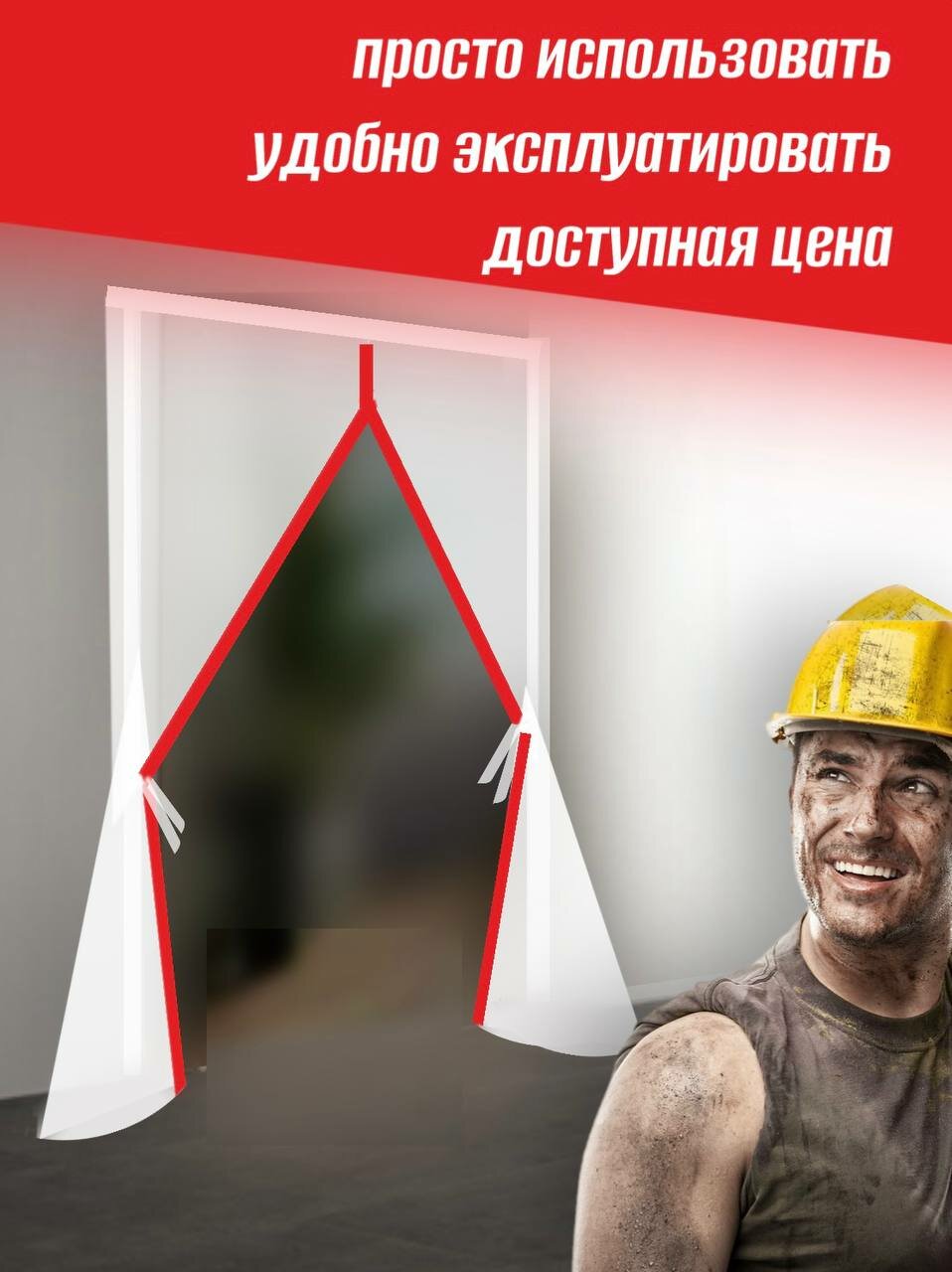 Временная пленочная дверь на молнии от пыли с красной молнией 220*155 1шт