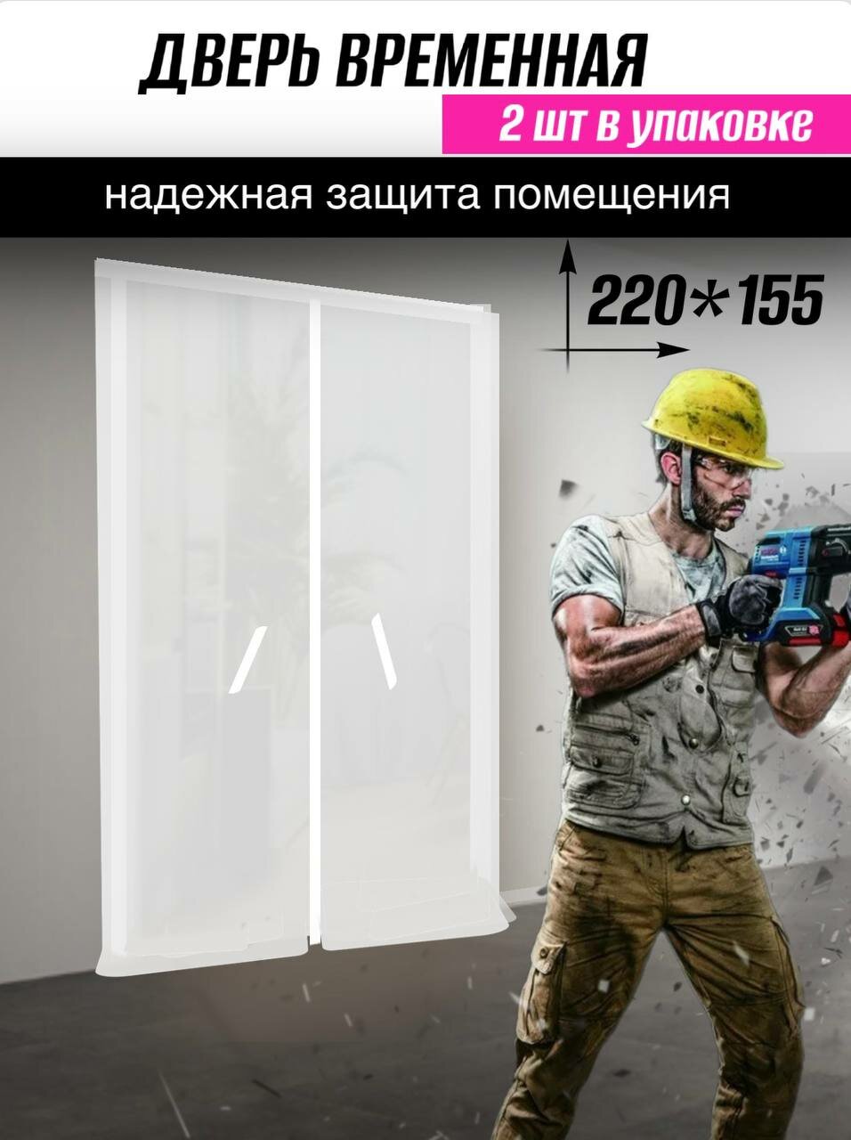 Временная пленочная дверь на молнии от пыли 220*155см 2шт в упаковке