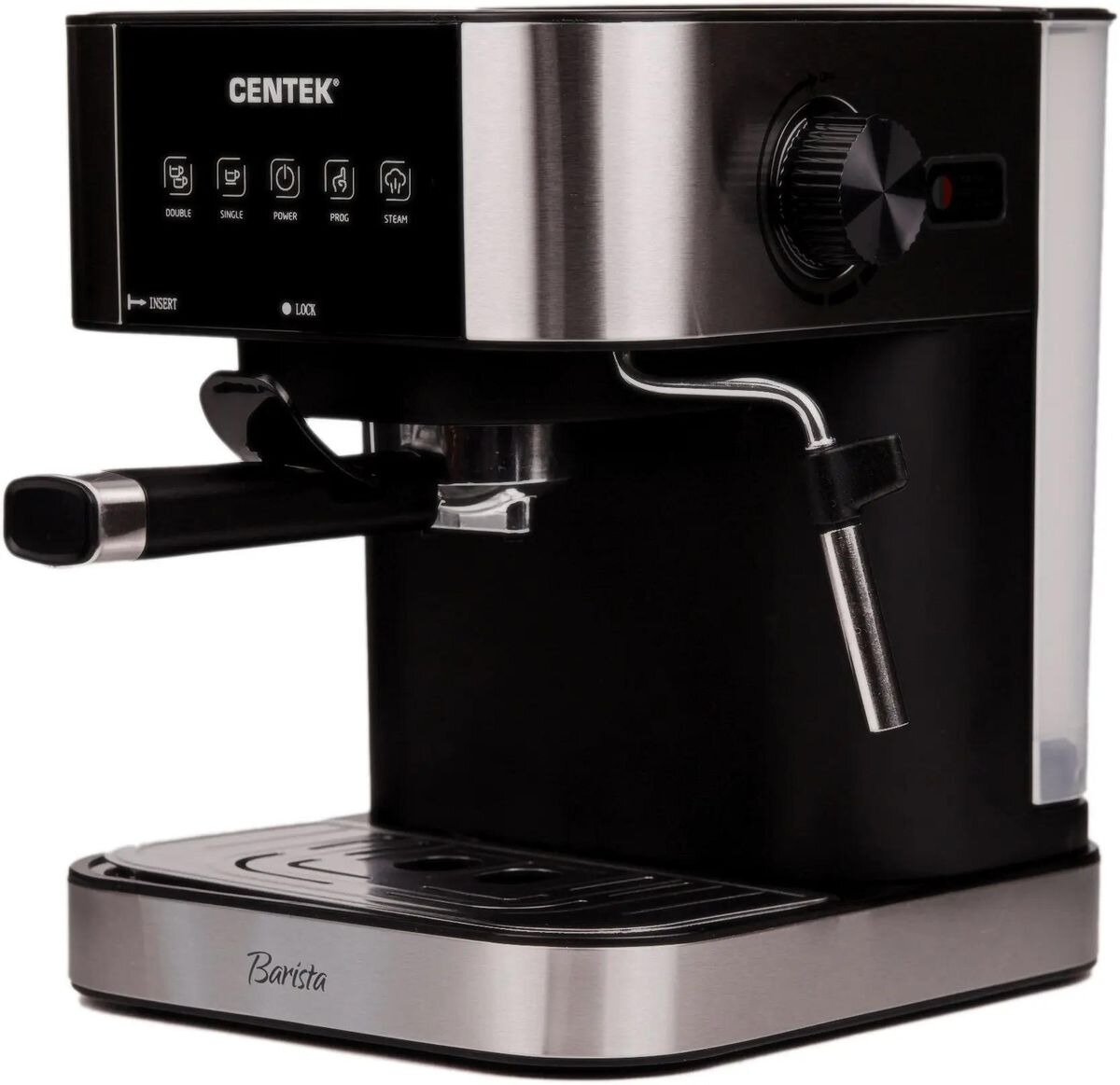 Кофеварка рожковая Centek CT-1167 2 порции, 20 бар, электрическая 850 Вт, чёрно-серебристая