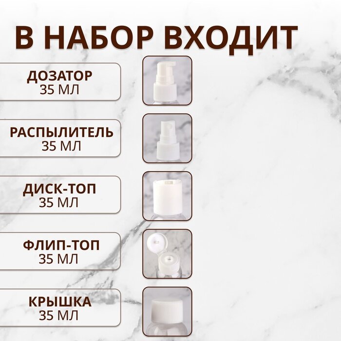 Купить Набор в чехле 5пр: распыл-35мл,дозатор-35мл,3бут-35мл со шкалой PVC чехол бел шильд от 3735778