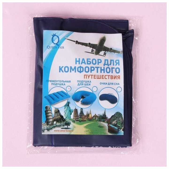 Купить ONLITOP Подушка дорожная, надувная, 46 × 30 × 7,5 см, цвет синий