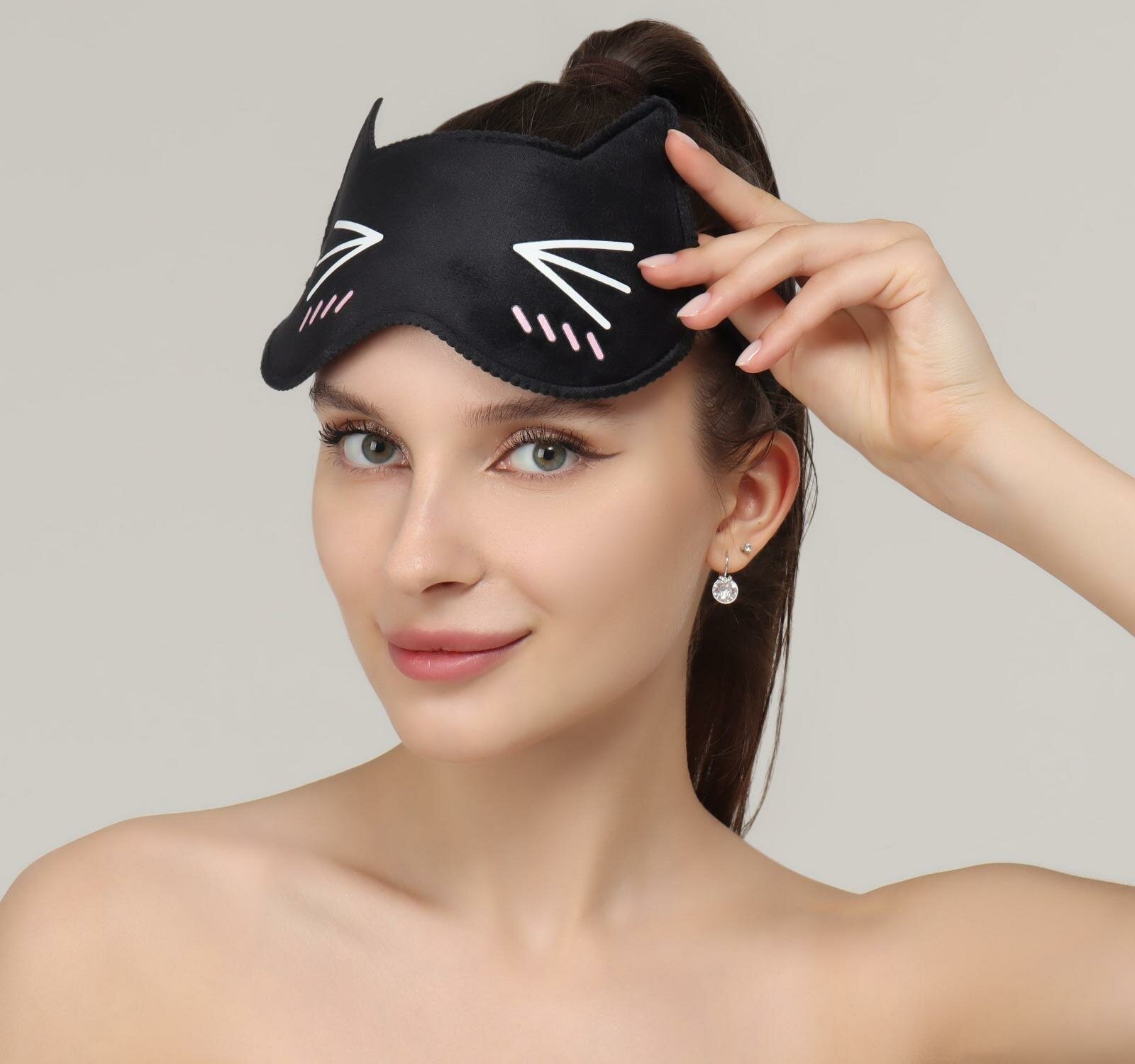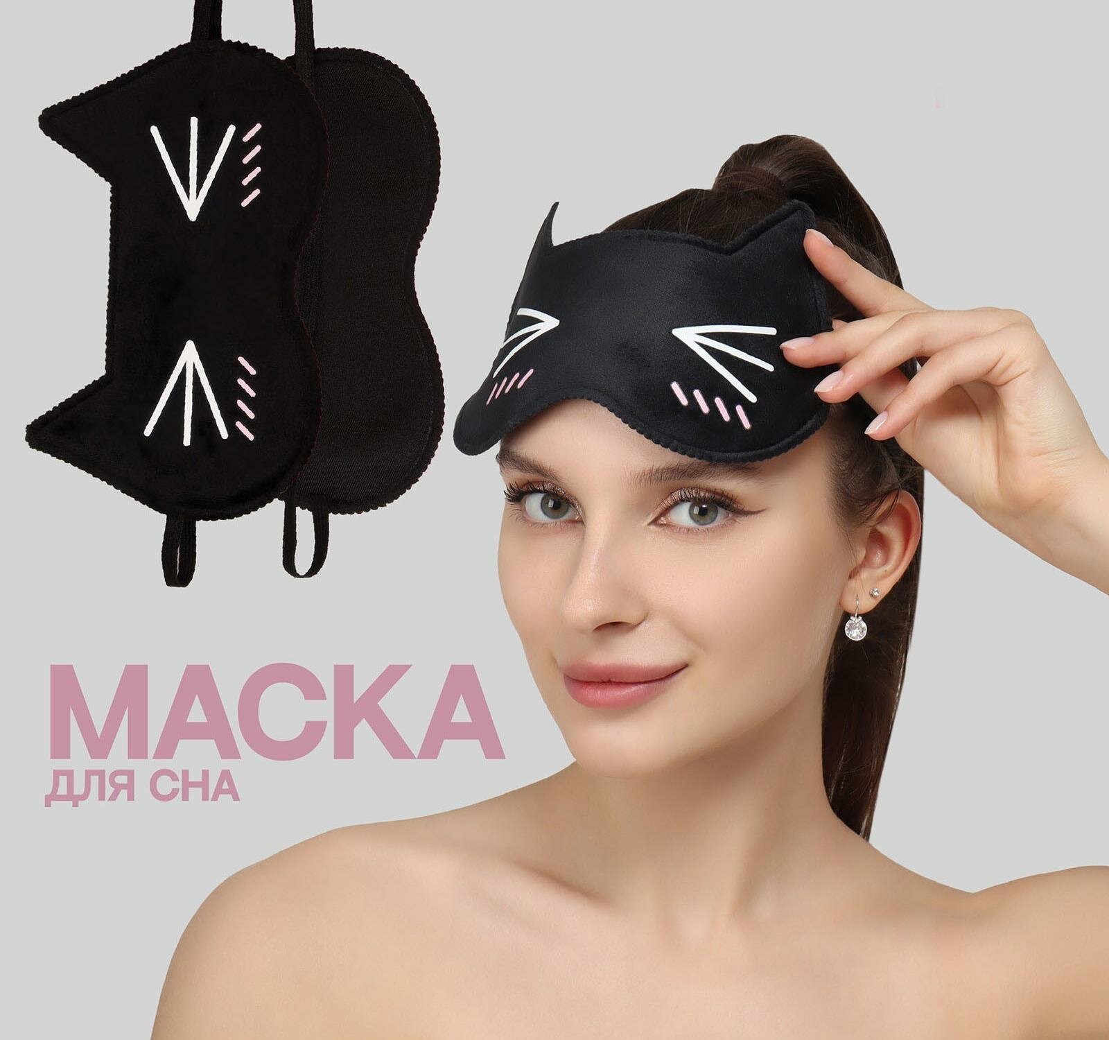 Купить Маска для сна ONLITOP Котяо, 19,5х12 см, одинарная резинка, черная (6115086)