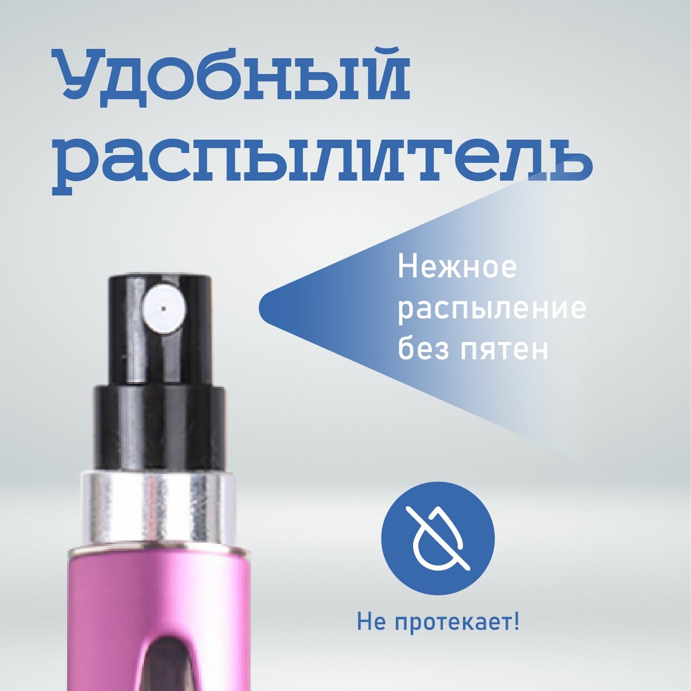 Атомайзер (флакон для духов) алюминиевый накачиваемый, глянцевый, 5 мл, розовый