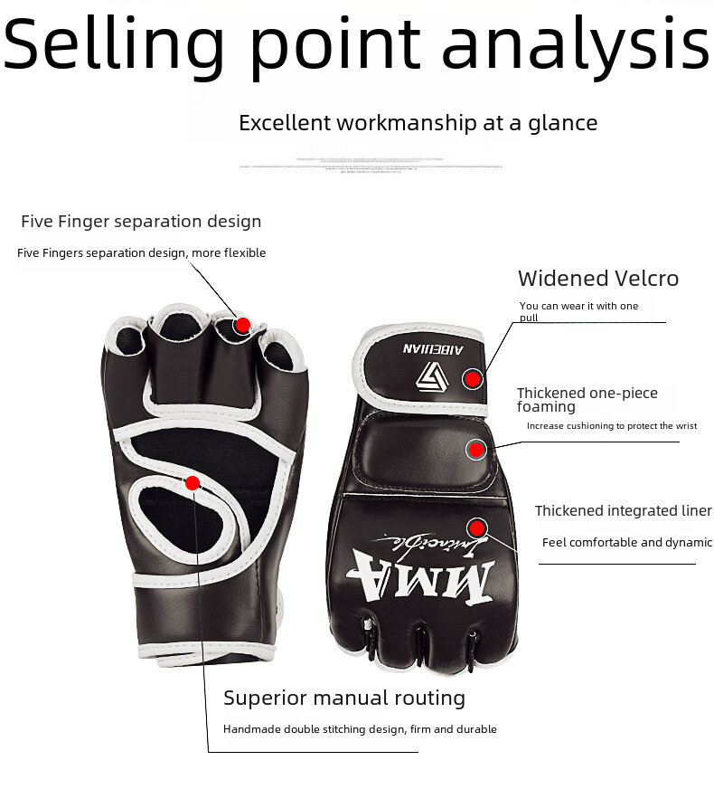 Перчатки MMA, для взрослых, на полпальца, черные интересное: