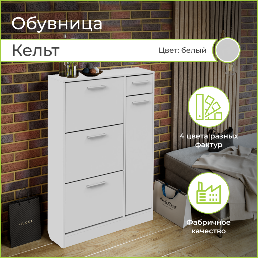 Обувница Кельт, BONMEBEL Белый, ЛДСП, 3 откидных ящика, шкафчик, выдвижной ящик, ЛДСП, 80х32х124 см интересное:
